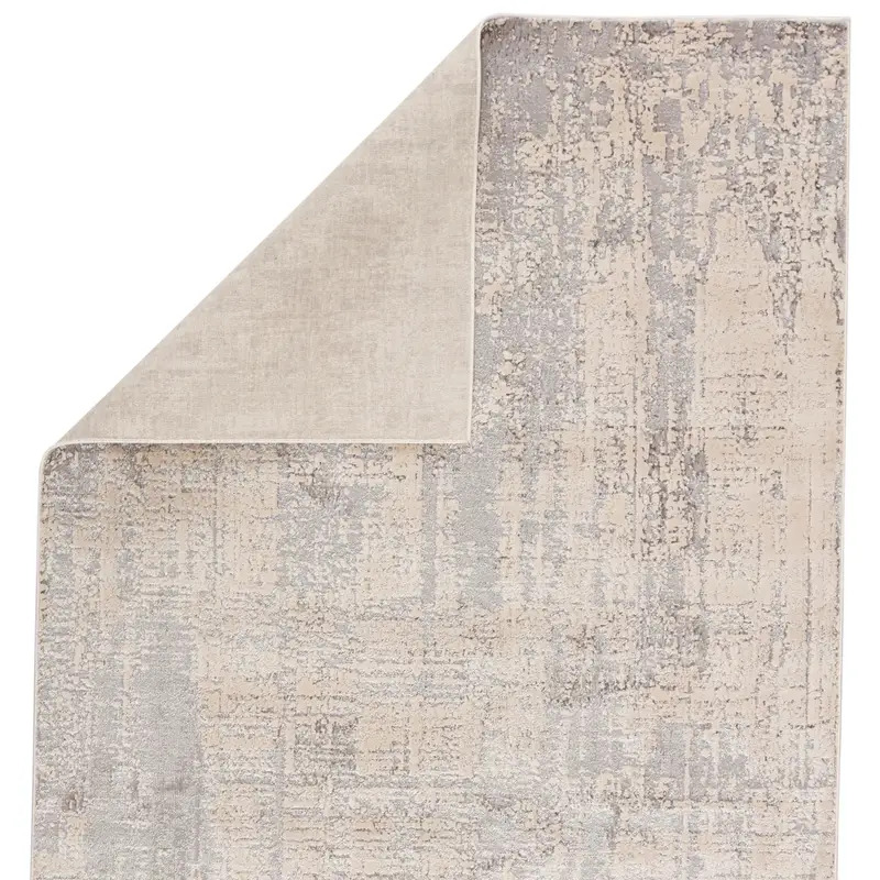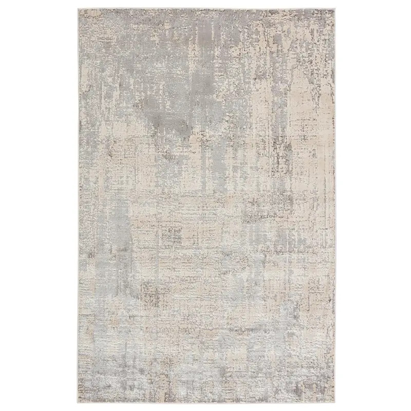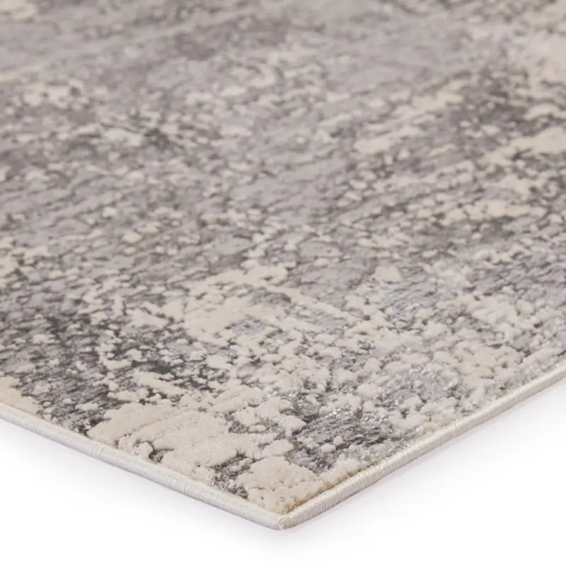 The show-stopping yet surprisingly versatile appeal of the Catalyst collection brings contemporary edge to any home. The neutral Calibra rug features a chic abstract design tones of ivory, gray, and silver. This power-loomed rug features metallic polyester fibers blended with stain-resistant polypropylene for a brilliant sheen from various perspectives.