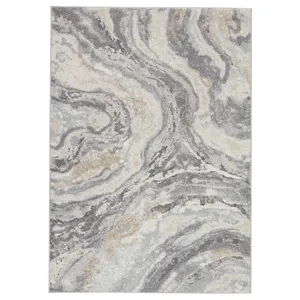 Serene hues and industrial style meld together to define the fresh, contemporary appeal of the Ferris collection. The Benton design features a dimensional abstract motif in tones of blue, gray, ivory, and hints of tan. This plush rug boasts added texture with carved, high-low details throughout the durable polyester and polypropylene pile.