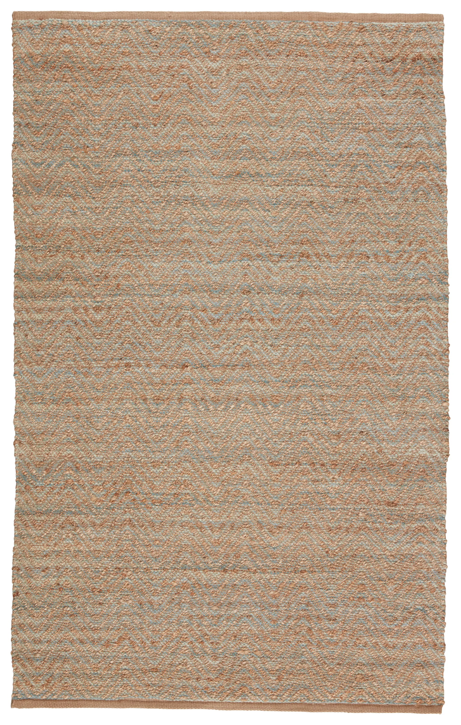 A natural area rug with a contemporary touch, this cotton-backed layer's rich tan tone and hints of pale green striated accents make a dimensional impact with a chevron weave. The organic texture of the hand-woven jute and rayon offers an intriguing feel and unique boho style.