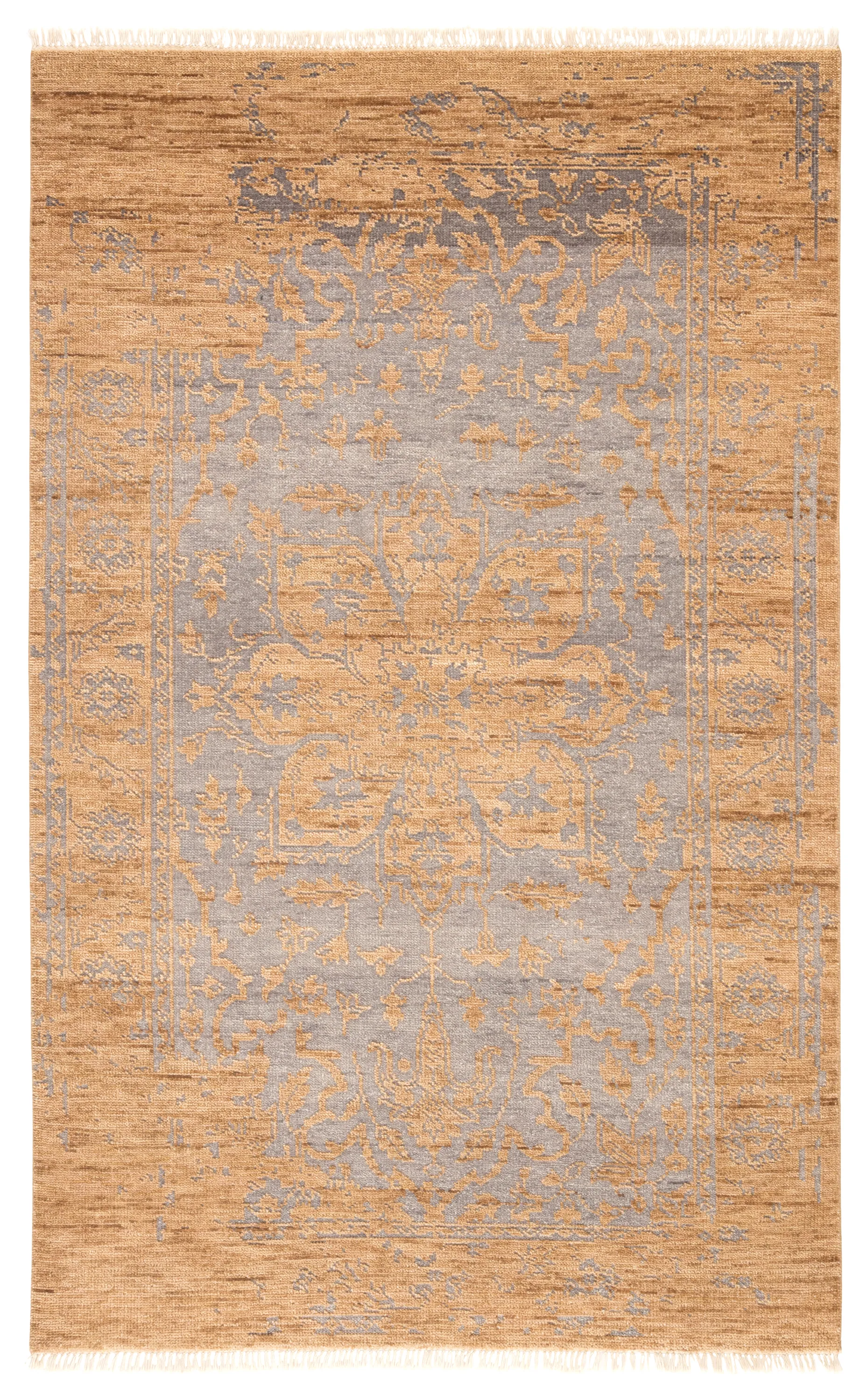 The Liberty collection infuses homes with traditional designs and exceptional artisan-made accents. The hand-knotted Abington rug combines a statement-making center star medallion with rich, saturated colors for an updated look. Golden tan and gray offer a neutral palette to this artisan-made wool rug.