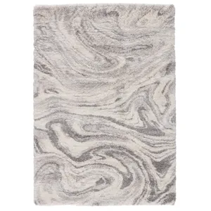 The Lyra collection boasts a modern interpretation of the classic shag style. In smoky grays and blues on a versatile cream backdrop, the Cantata area rug showcases an industrial abstract design on rich, plush pile. This rug is power loomed of durable and easy-care polypropylene for a virtually shed-free accent.