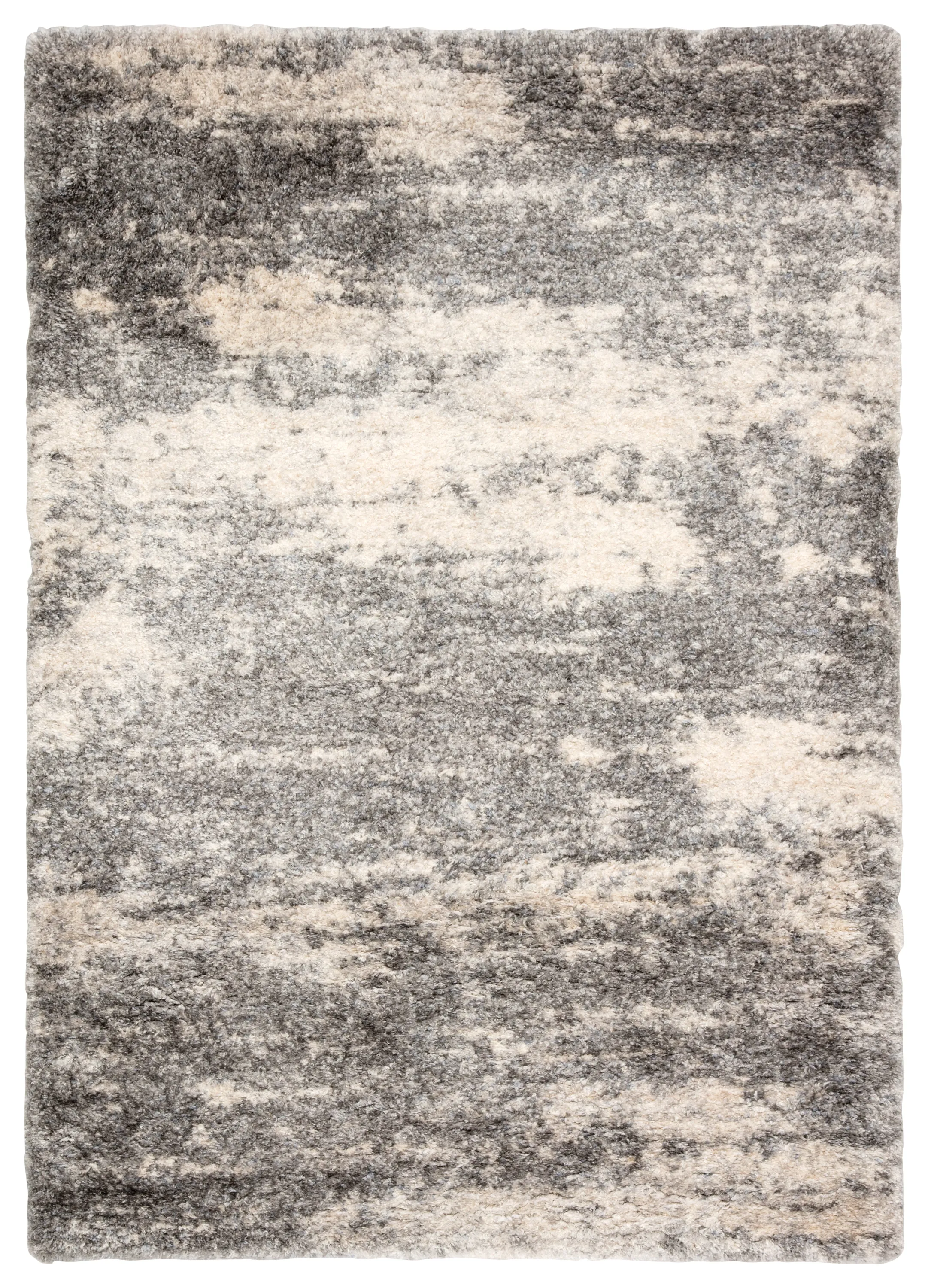 The Lyra collection boasts a modern interpretation of the classic shag style. In a smoky gray and cream colorway, the Elodie area rug showcases an industrial abstract design on rich, plush pile. This rug is power loomed of durable and easy-care polypropylene for a virtually shed-free accent.