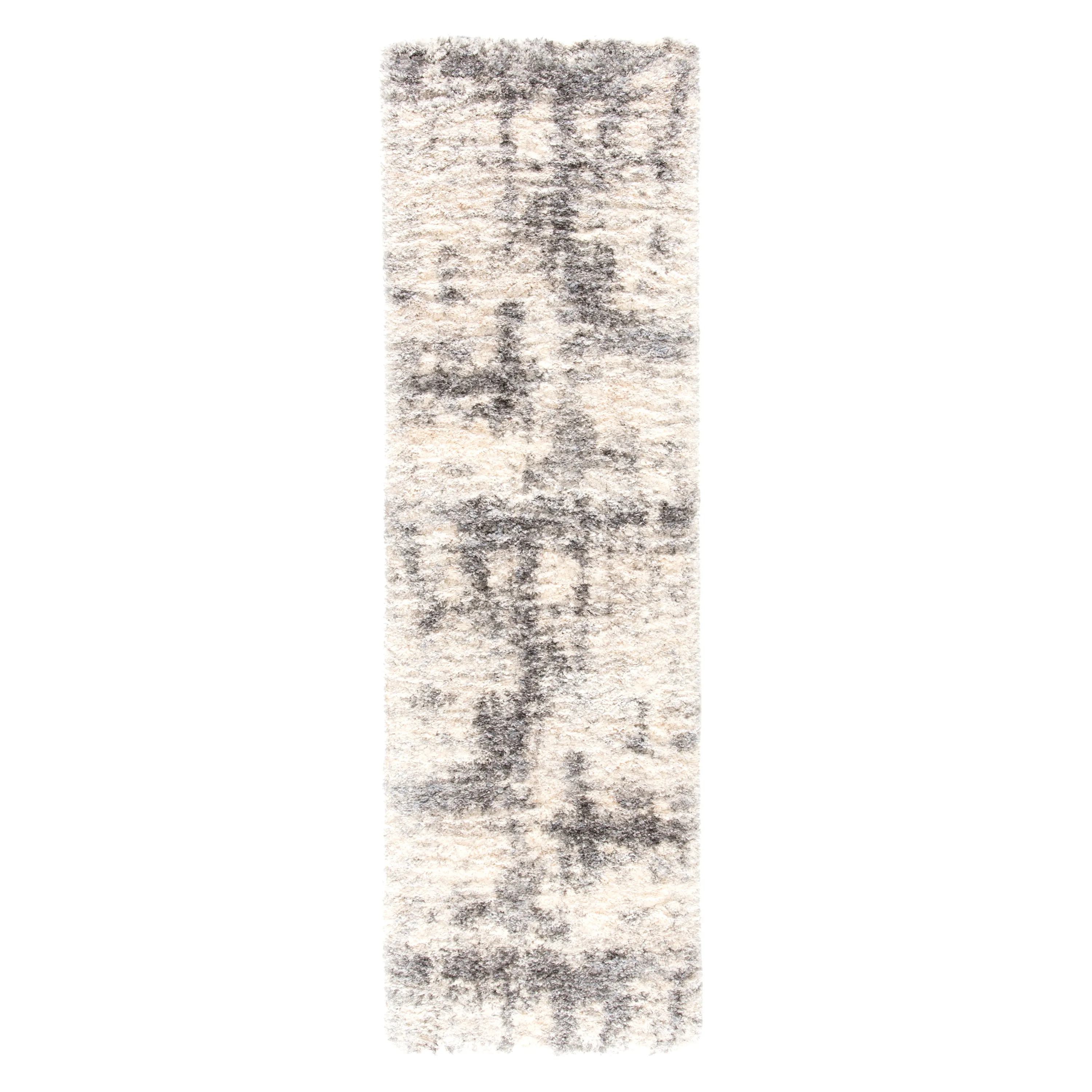 The Lyra collection boasts a modern interpretation of the classic shag style. In a soft blend of gray and cream with hints of blue, the Serenade area rug showcases an industrial abstract design on rich, plush pile. This rug is power loomed of durable and easy-care polypropylene for a virtually shed-free accent.