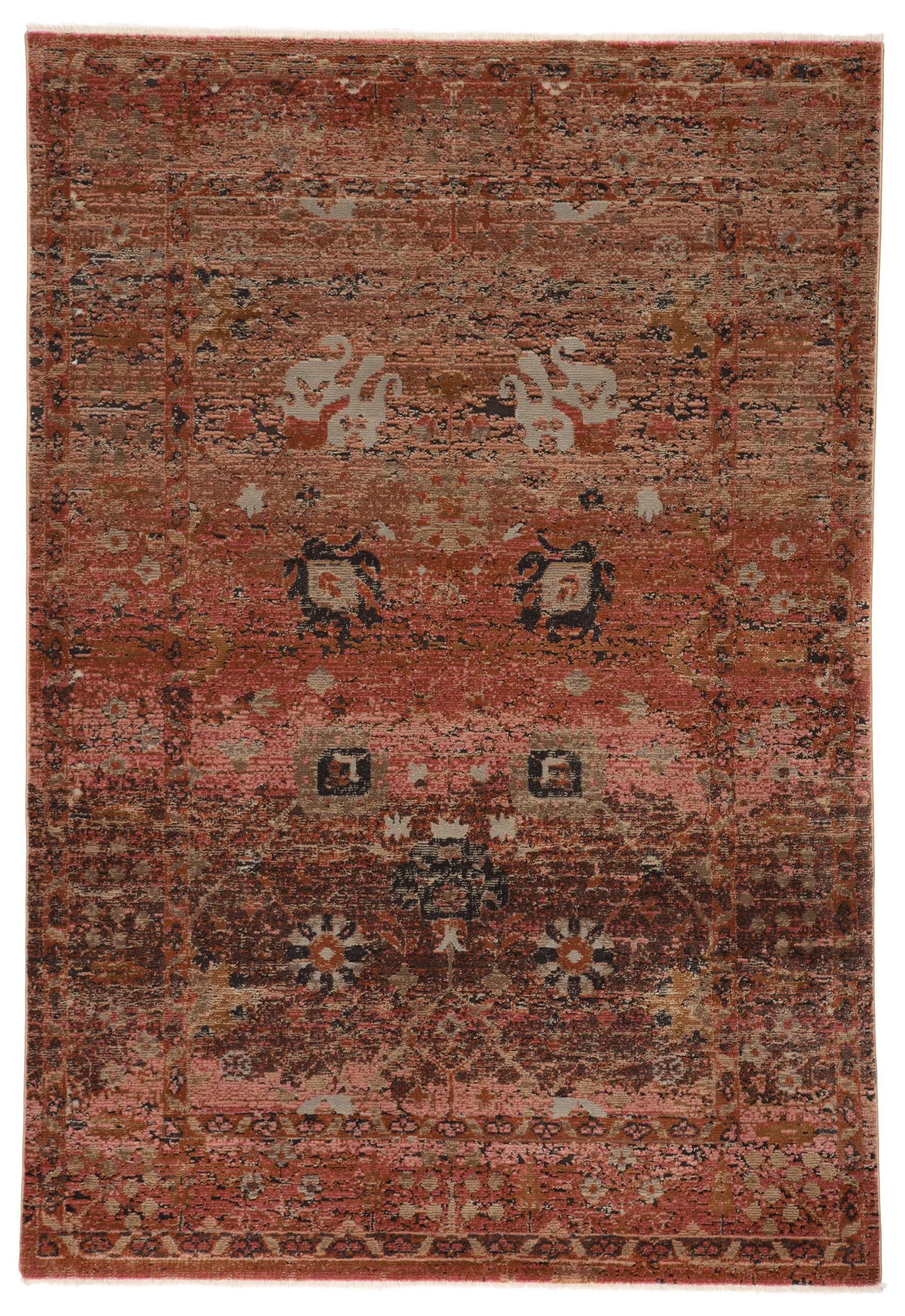 Inspired by the vintage perfection of sun-bathed Turkish designs, the Myriad collection is warm and inviting with faded yet moody hues. The Caruso rug boasts a perfectly distressed pattern in rich tones of terracotta, pink, taupe, and tan with ivory fringe trim for added texture and antique allure. This power-loomed rug features a plush and durable blend of polyester and polypropylene, lending the ideal accent to high-traffic spaces.