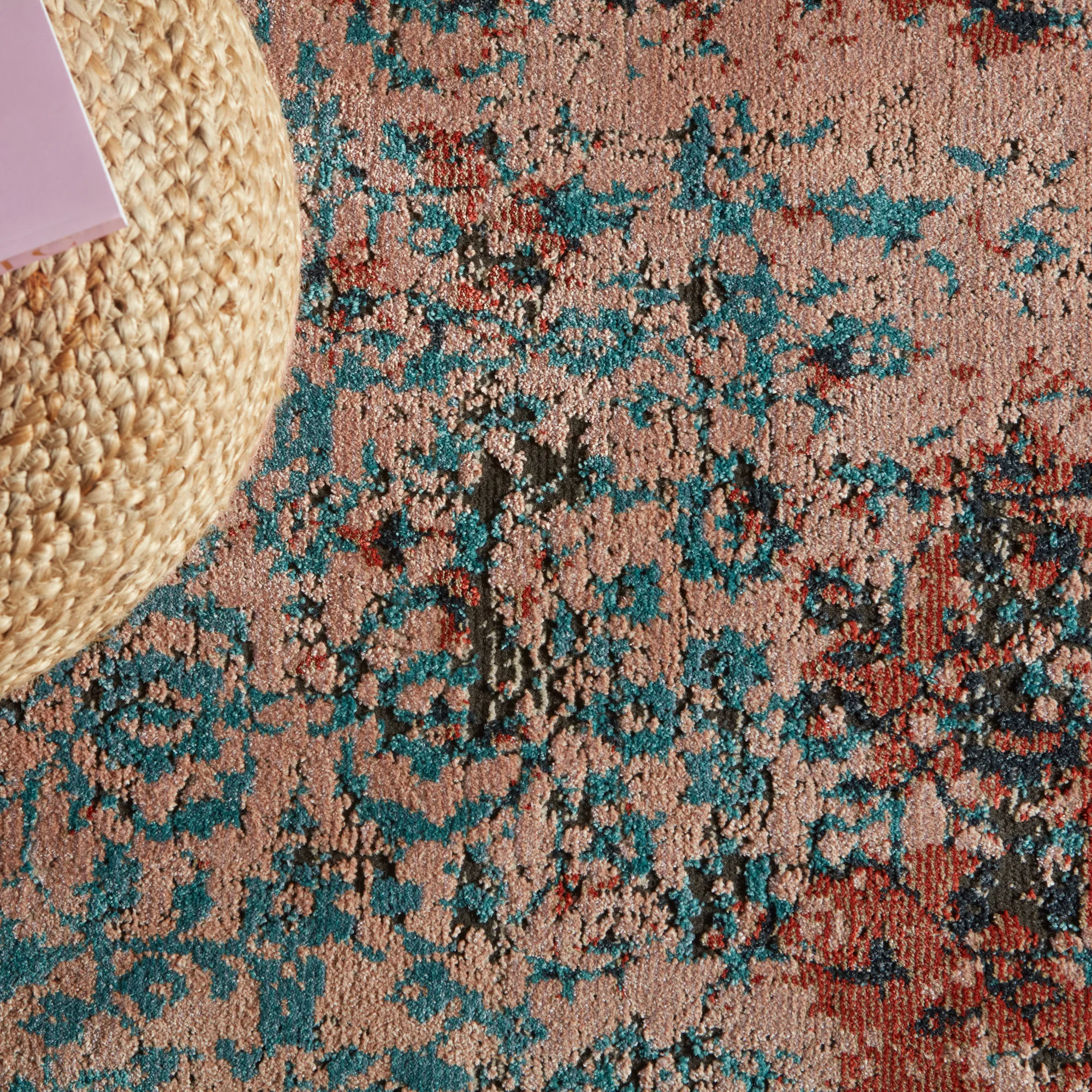 Inspired by the vintage perfection of sun-bathed Turkish designs, the Myriad collection is warm and inviting with faded yet moody hues. The Zea area rug features an erased brocade motif in a femme yet bold color scheme of pink and teal. This power-loomed rug features a plush and durable blend of polyester and polypropylene, lending the ideal accent to high-traffic spaces.