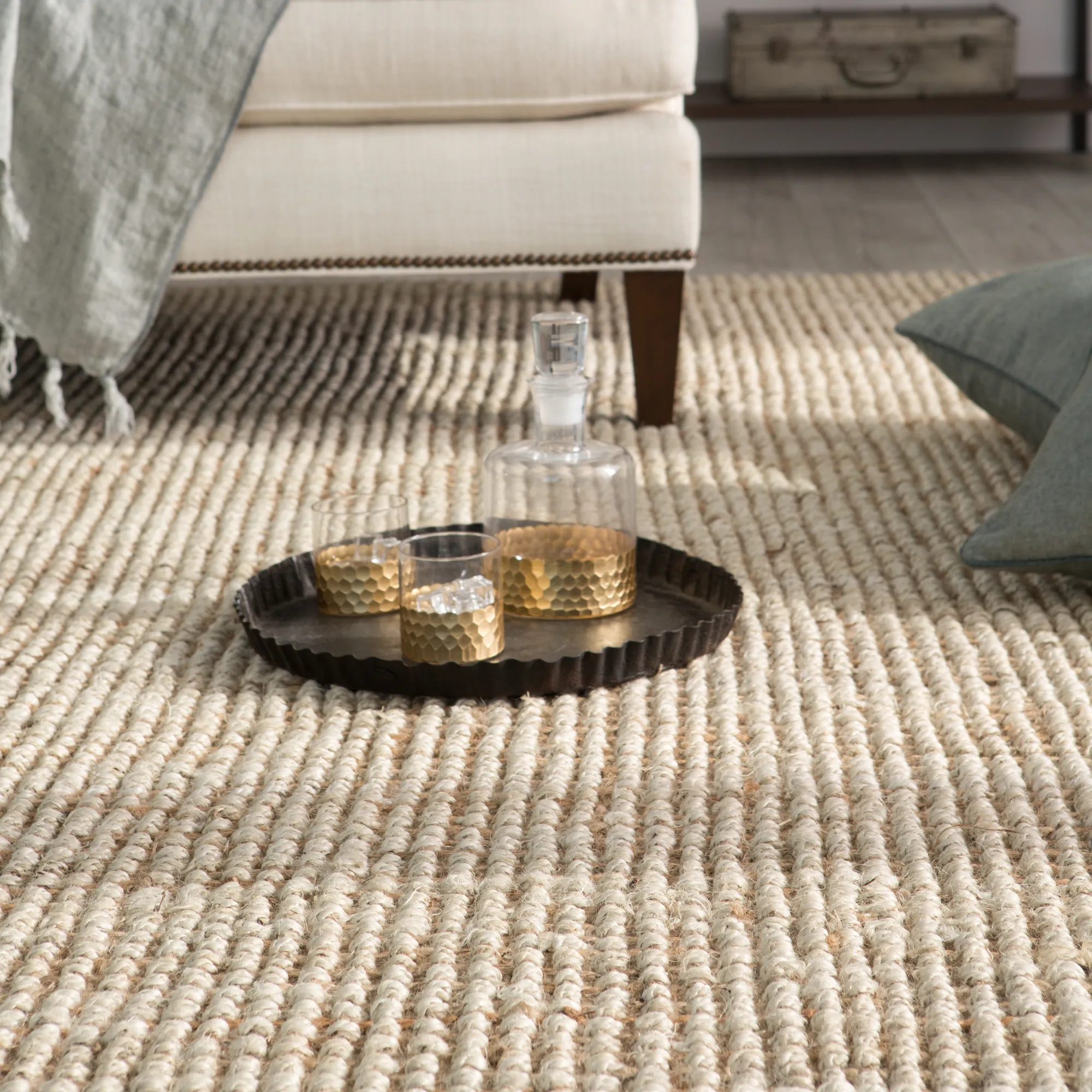 This natural jute area rug offers a neutral foundation to transitional homes. With a texture-rich chunky weave, this casually elegant layer lends an eco-friendly accent in a duo-toned white and tan colorway.