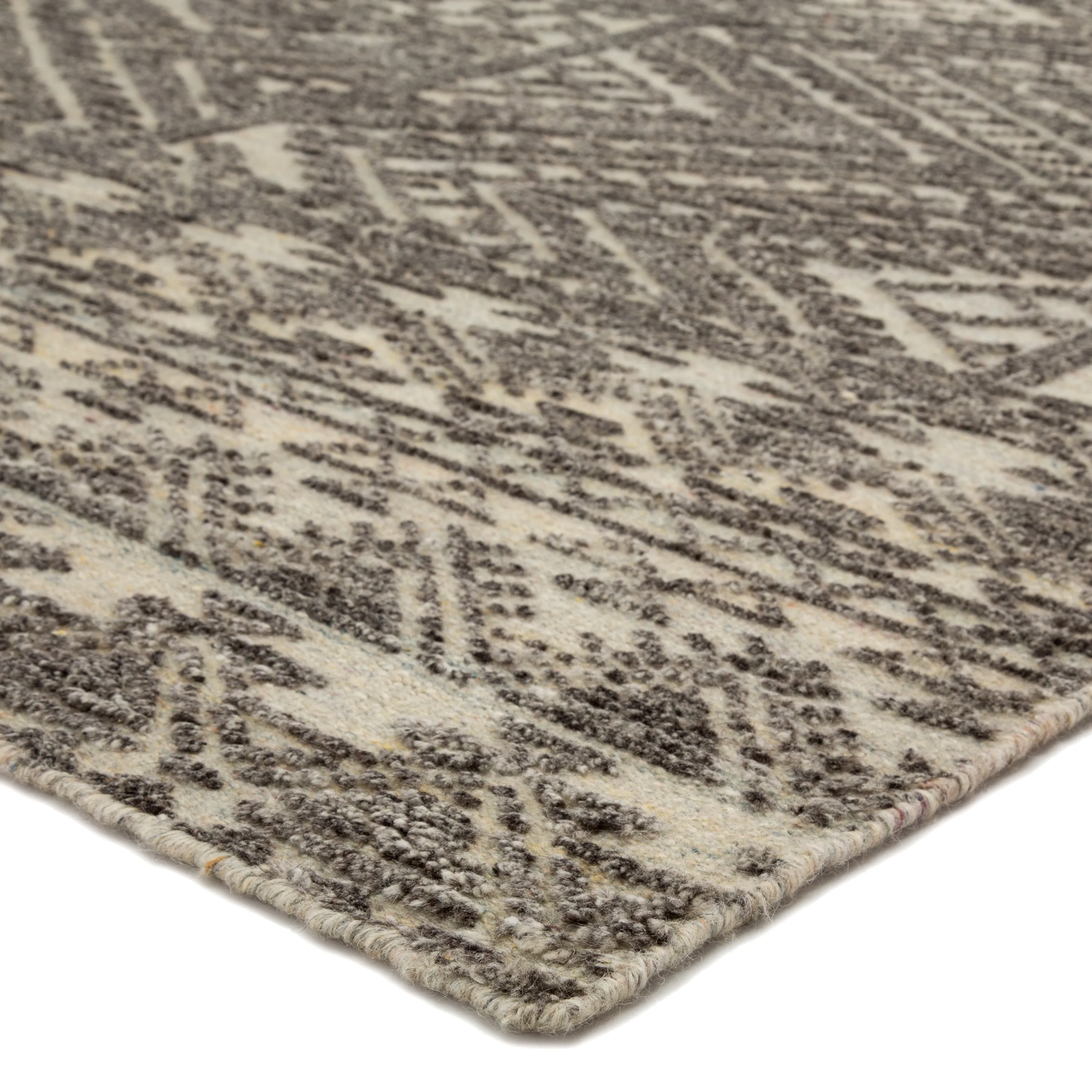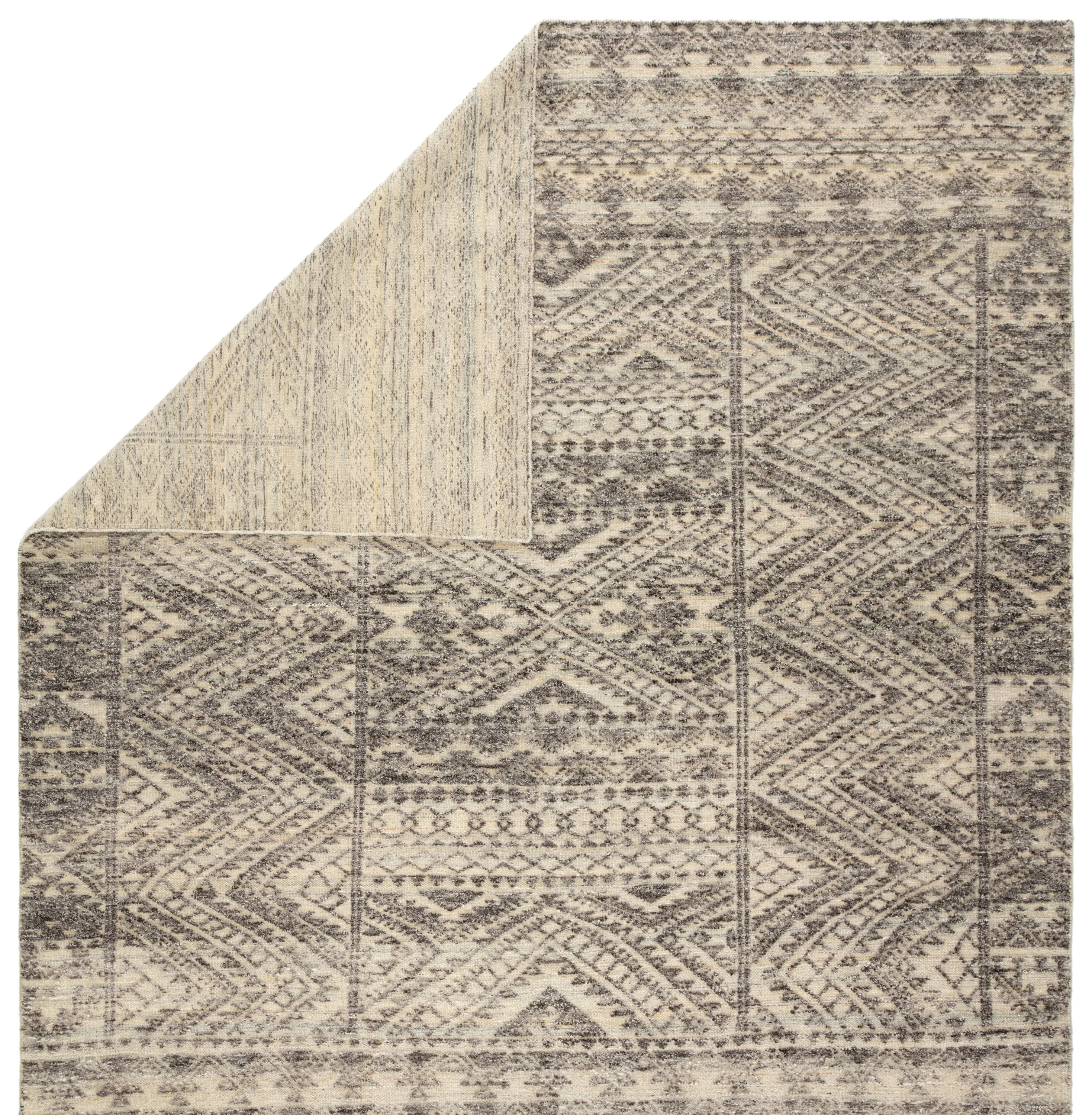 The captivating Reign collection introduces detail-rich design and inviting carved pile to contemporary and traditional homes alike. The hand-knotted Prentice rug showcases an intricate geometric motif with chevron and bordered accents. Grounded by a natural ivory hue, the textured, tonal gray pattern makes a stunning statement on this wool rug.