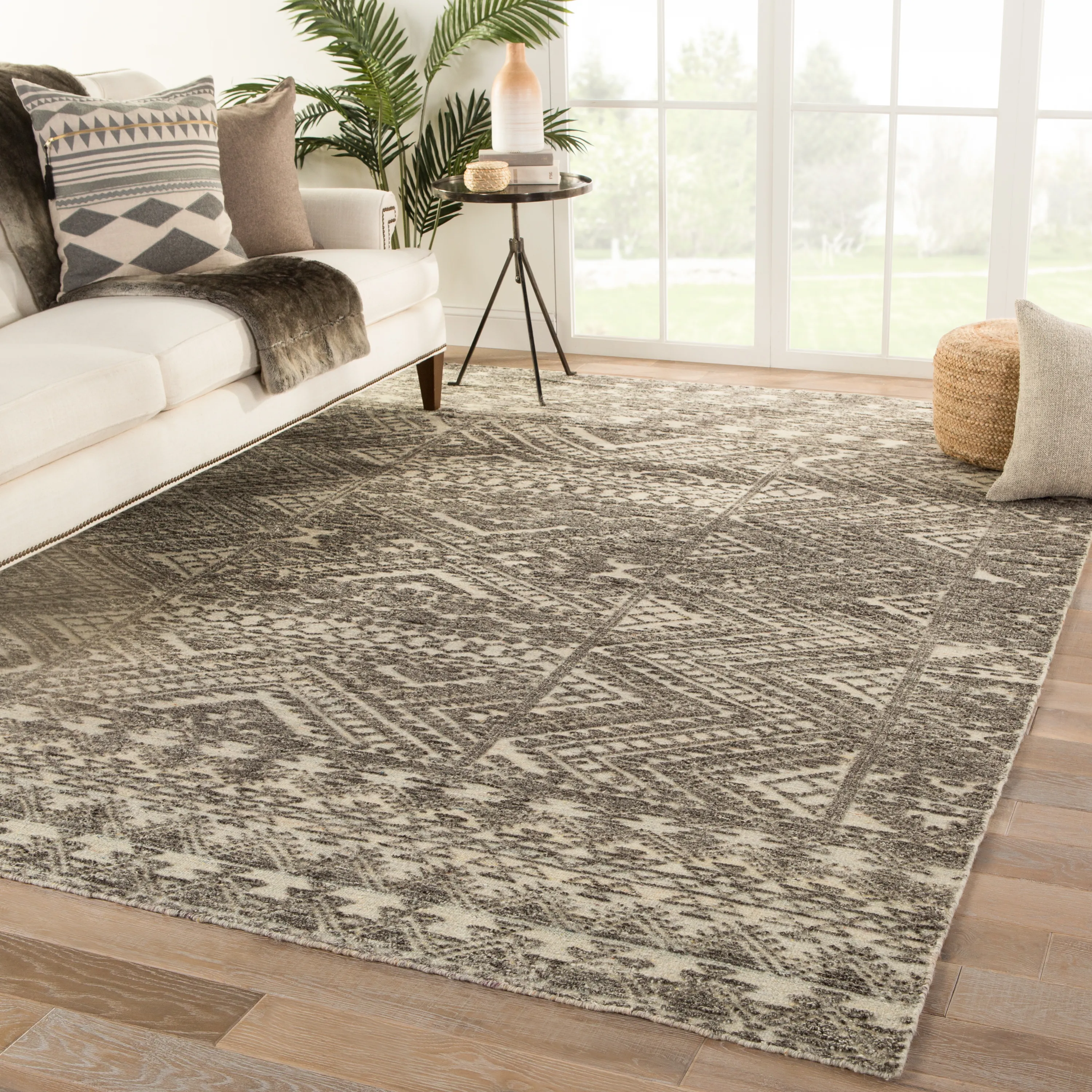 The Reign Prentice Hand-Knotted Geometric Dark Gray/ Taupe Area Rug by Jaipur Living may be available at Wright Furniture & Flooring in the Hannibal, Bowling Green and Hannibal areas. Please contact us to check availability.