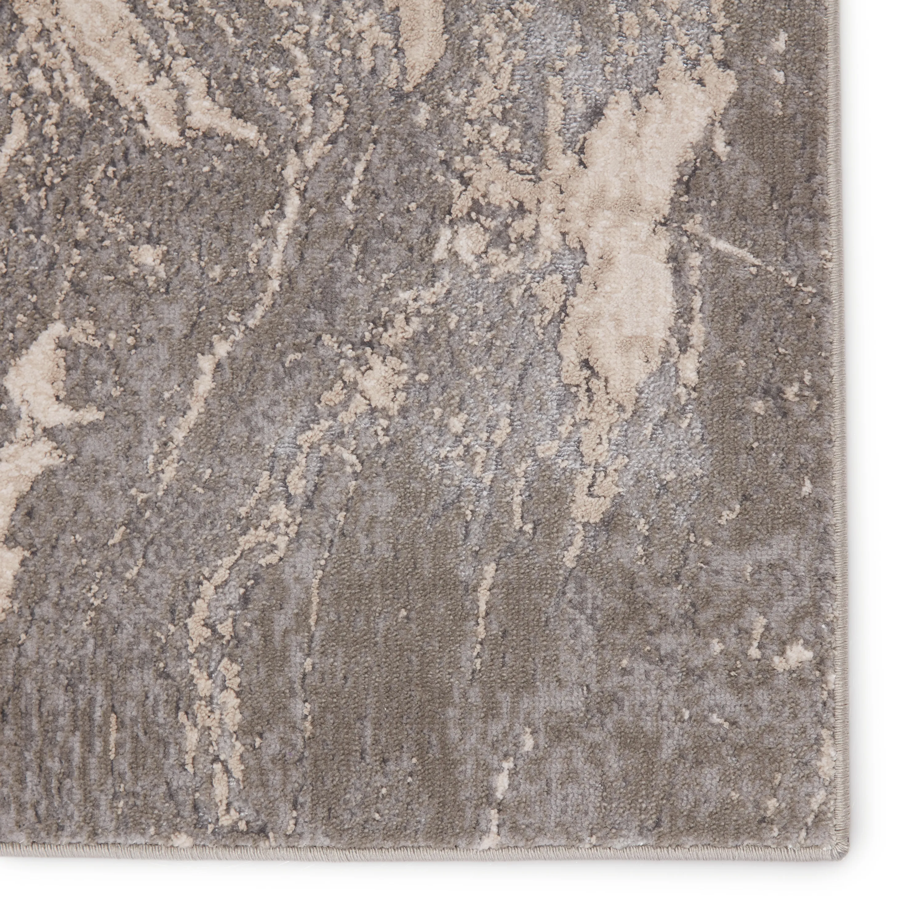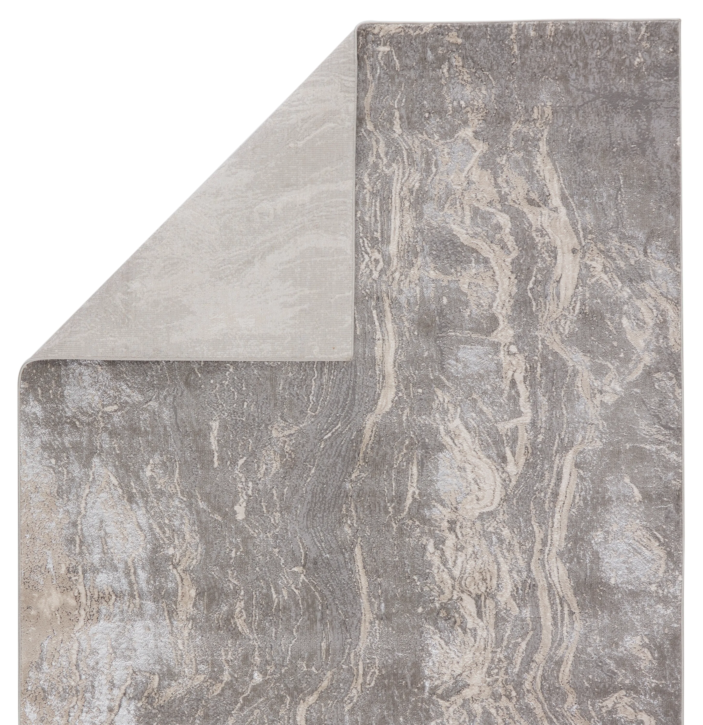 The Sinclaire collection is a vintage-inspired assortment of faded traditional designs for a casual yet glam statement. The Druzy rug boasts a modernized nature-inspired motif with lustrous metallic details and a cream, gray, and silver colorway. The sleek polyester and polypropylene fibers of this luxe rug lend a chameleon-like shine, offering the unique blend of modernity and timeless distressing.
