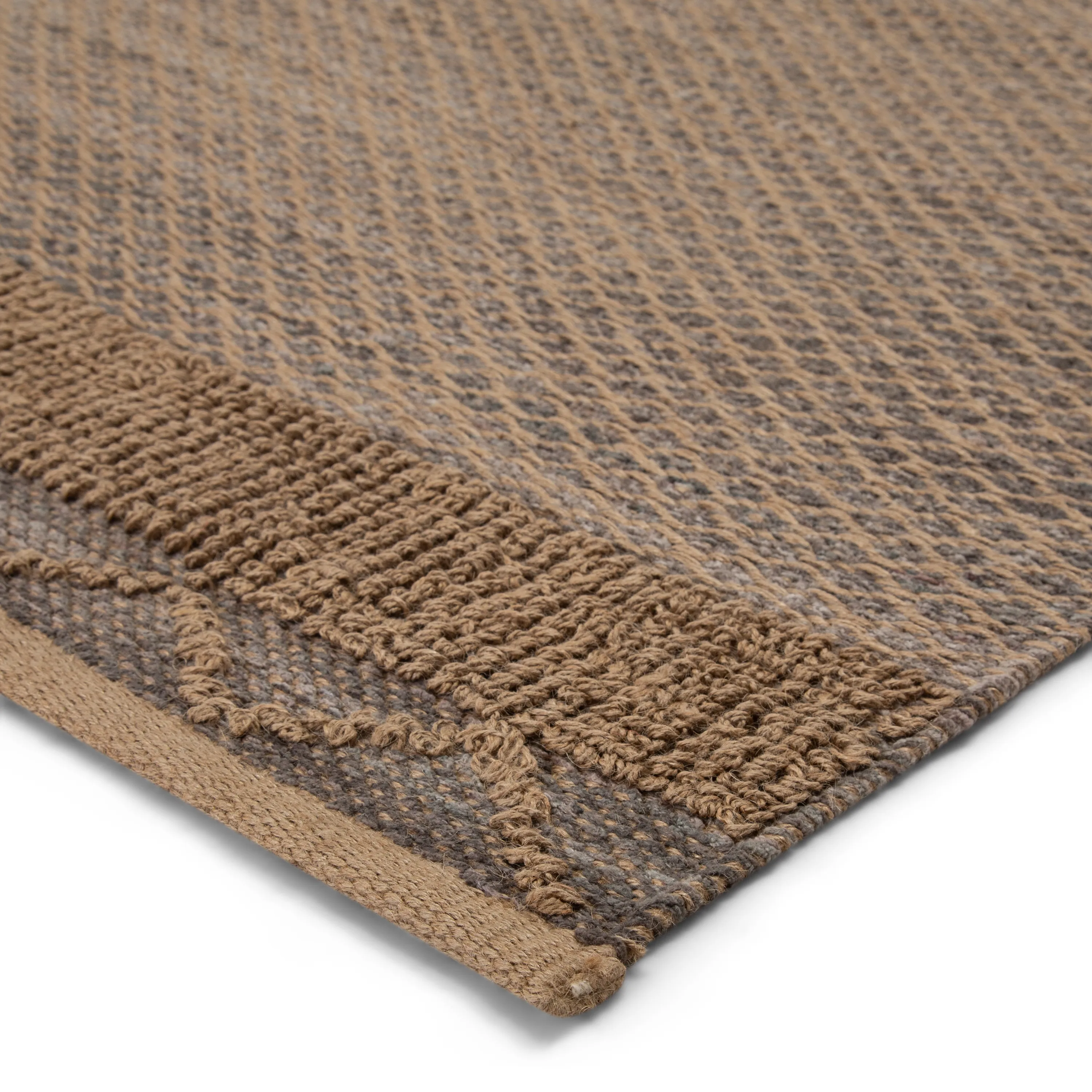The Somerset collection features a unique blend of natural fibers and soft, inviting rayon. With a relaxed, bohemian vibe, the Curran rug's tan and gray colorway grounds spaces with a chic diamond lattice pattern and boucle border.