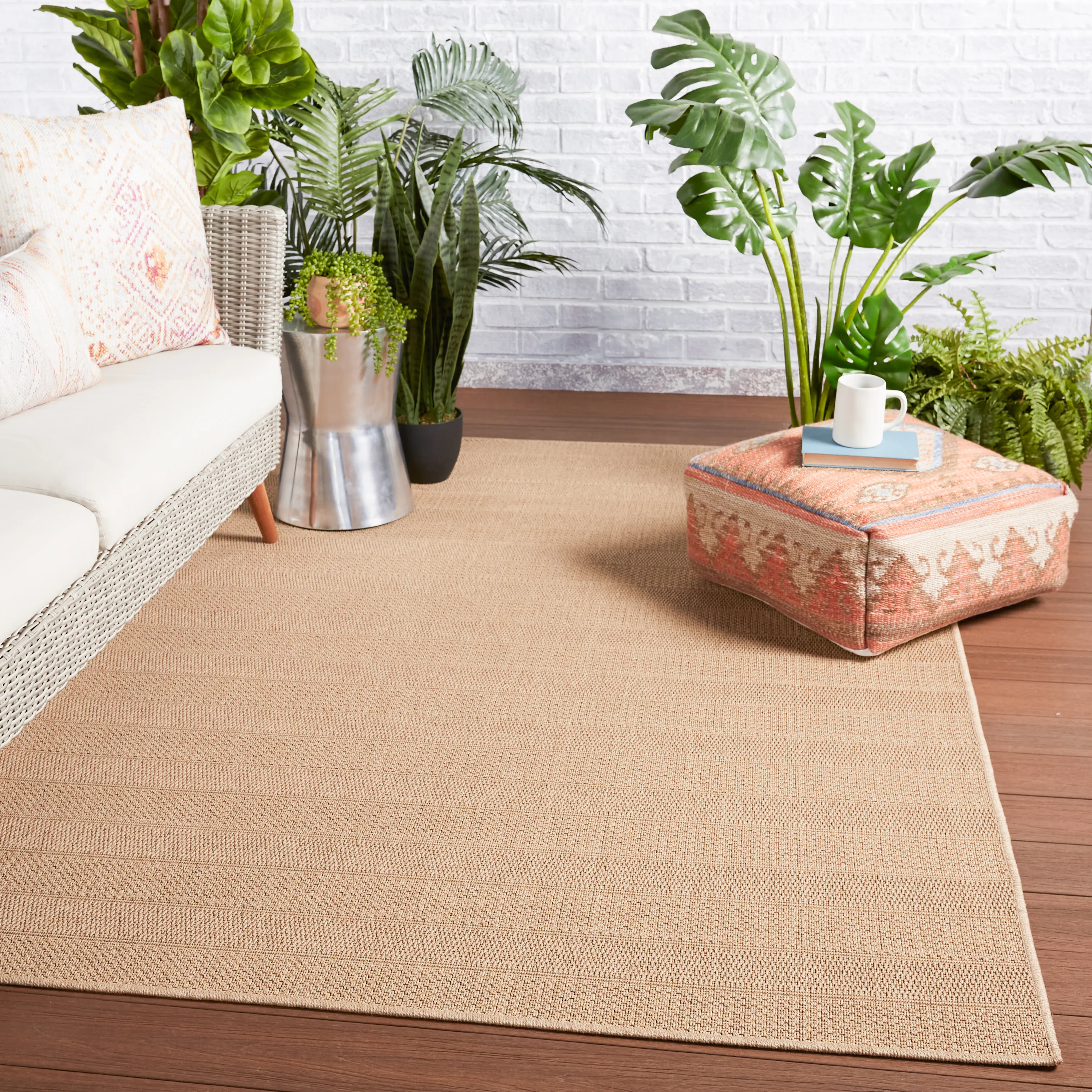 - Textured Flatweave: woven construction emulates natural fibers