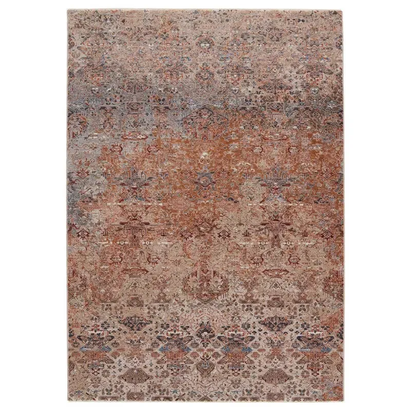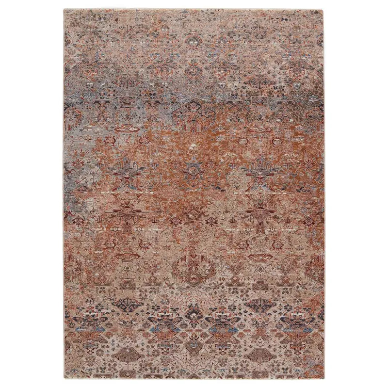 The perfect medley of bold colorways and subtle, classic allure, the Valentia collection lends a trace of timelessness to any style space. The Eliana rug features an ornate design in terracotta, gold, beige, and blue. Crafted of durable polyester and soft viscose for an inviting and luxurious hand, this power-loomed rug boasts texture-rich high-low pile.