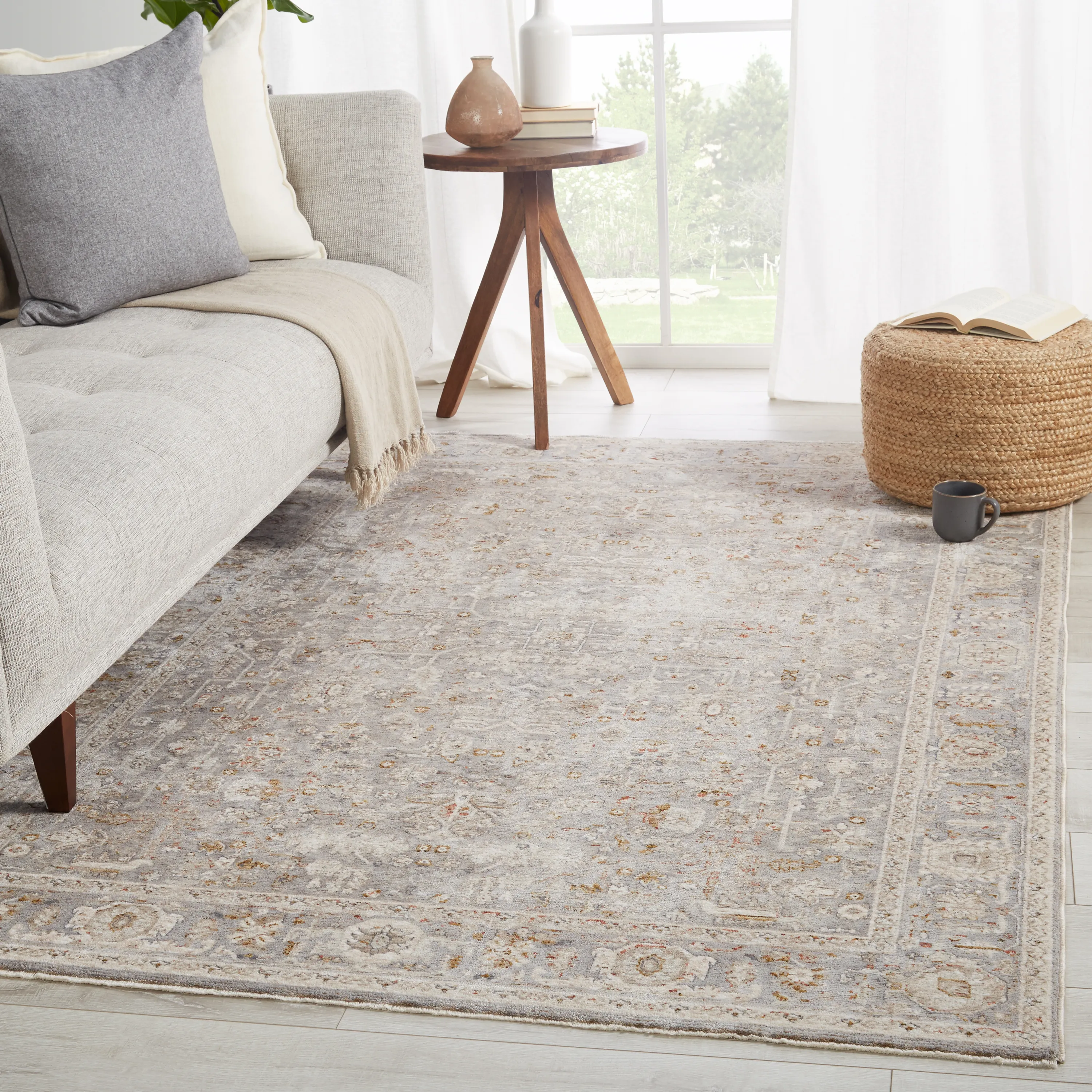 The perfect medley of bold colorways and subtle, classic allure, the Valentia collection lends a trace of timelessness to any style space. The Amaris rug features intricate floral motifs in tones of gray, cream, and tan with hints of red throughout. Crafted of durable polyester and soft viscose for an inviting and luxurious hand, this power-loomed rug boasts texture-rich high-low pile.