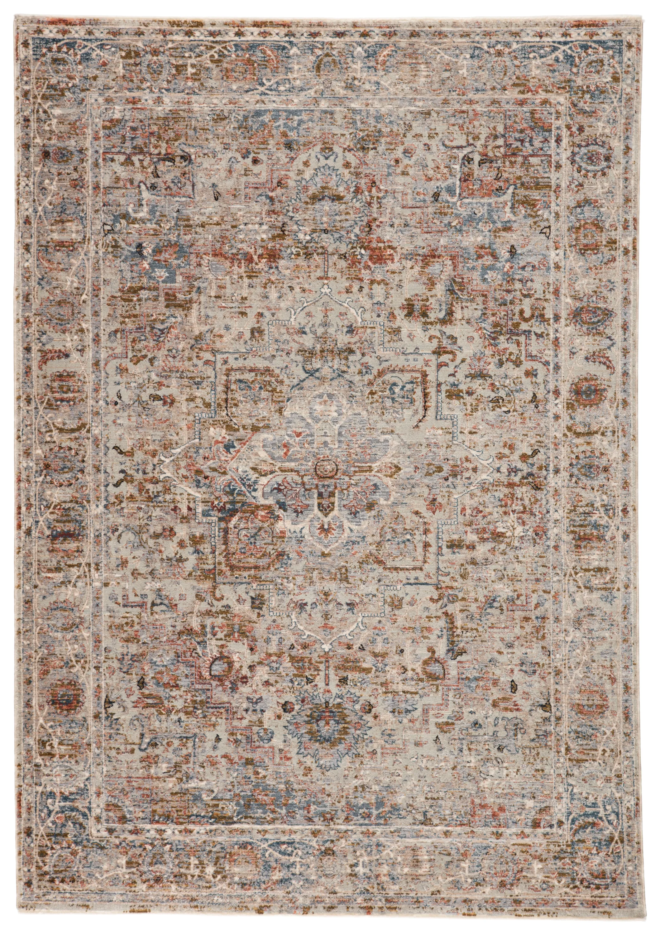 The perfect medley of bold colorways and subtle, classic allure, the Valentia collection lends a trace of timelessness to any style space. The Pierce rug features an erased center medallion in tones of golden tan, cream, and gray with warm hints of terracotta. Crafted of durable polyester and soft viscose for an inviting and luxurious hand, this power-loomed rug boasts texture-rich high-low pile.