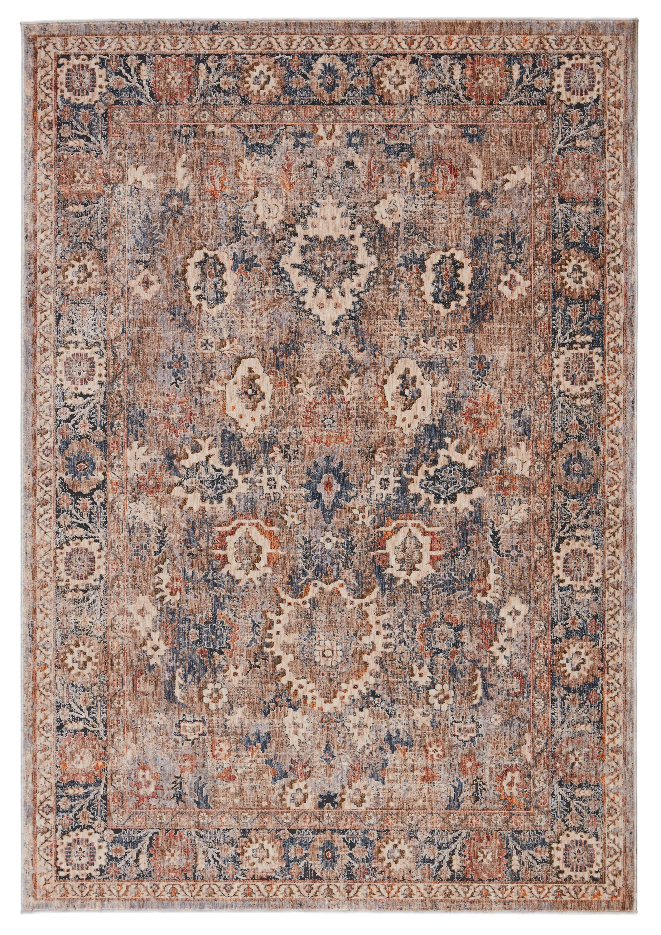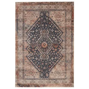 The richly colored Vanaday collection lends stunningly distressed designs to on-trend spaces. The Inari rug features an ornate traditional pattern with a contemporary, space-dyed colorway of dusty red, deep blue, gold, and taupe. Easy-to-clean and perfect for heavily trafficked areas, this polyester rug combines an innovative power-loomed quality with a vintage-inspired, global look.