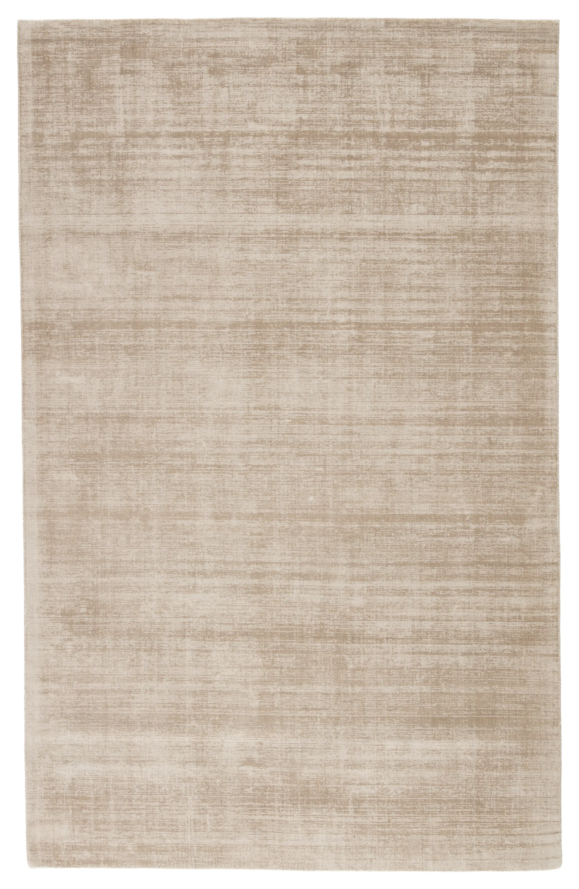 Effortless luxury defines this alluring and stunningly soft hand-loomed viscose area rug. The perfect accent for a glamorous bedroom, this neutral greige layer boasts a dazzling luster and artistically distressed design.