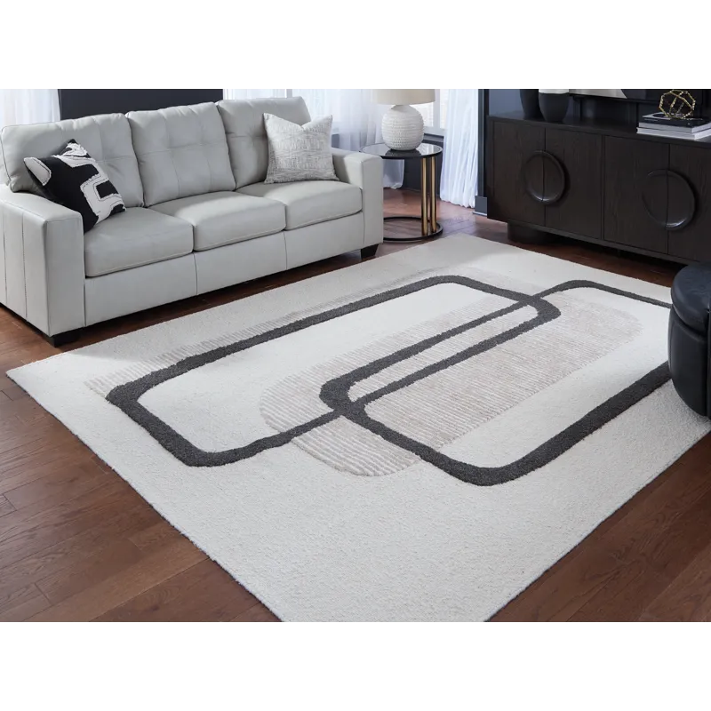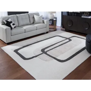 Wow with contemporary cool character. This divine hand tufted area rug delights with an abstract design in ivory, taupe and charcoal, making it a tasteful choice for so many spaces. It's balanced sophistication at its finest.