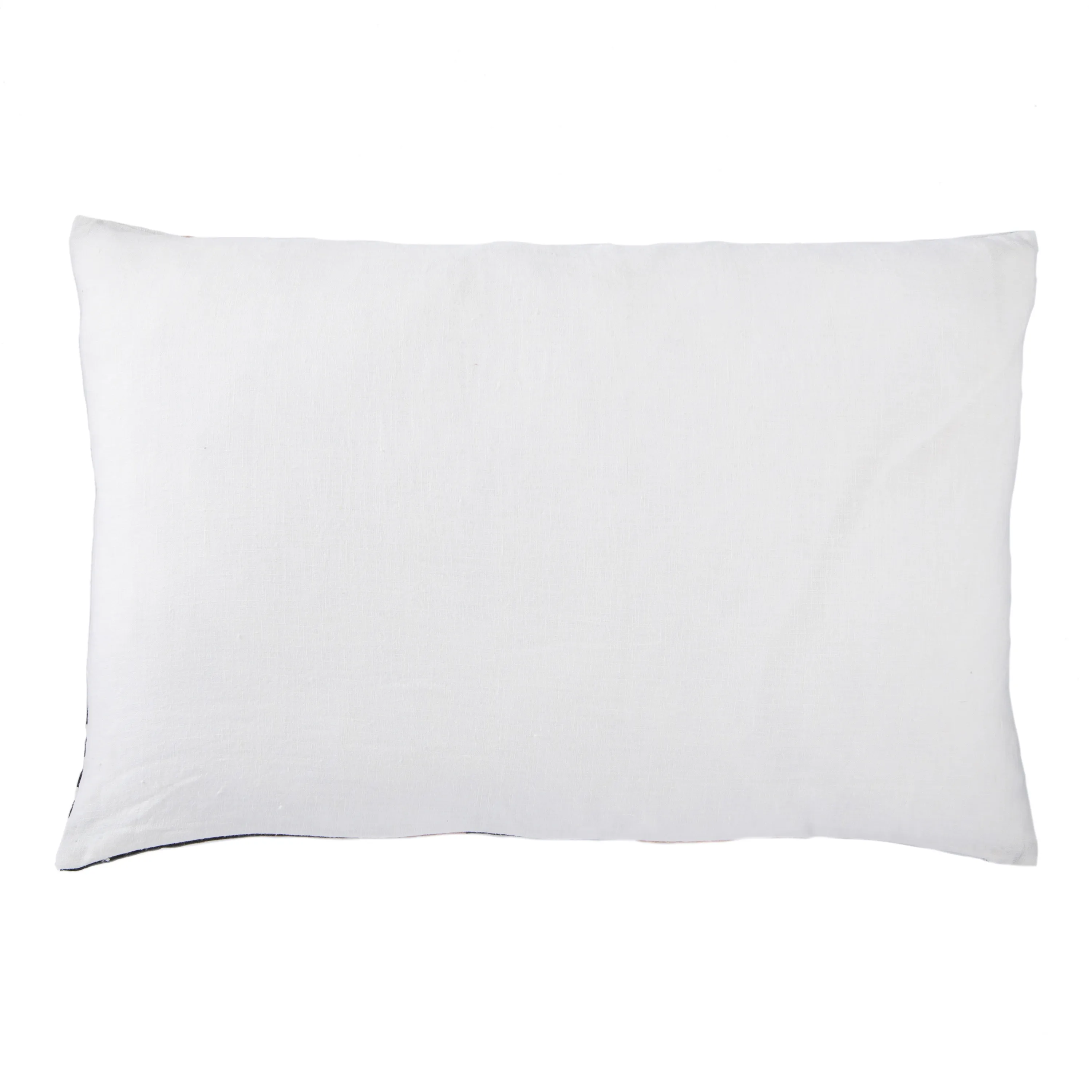 This striking Nikki Chu lumbar pillow showcases a mid-century modern geometric design, edgy and vintage in the same moment. Chic blush tones contrast with black and white, creating a dramatic impact on this soft linen accent.