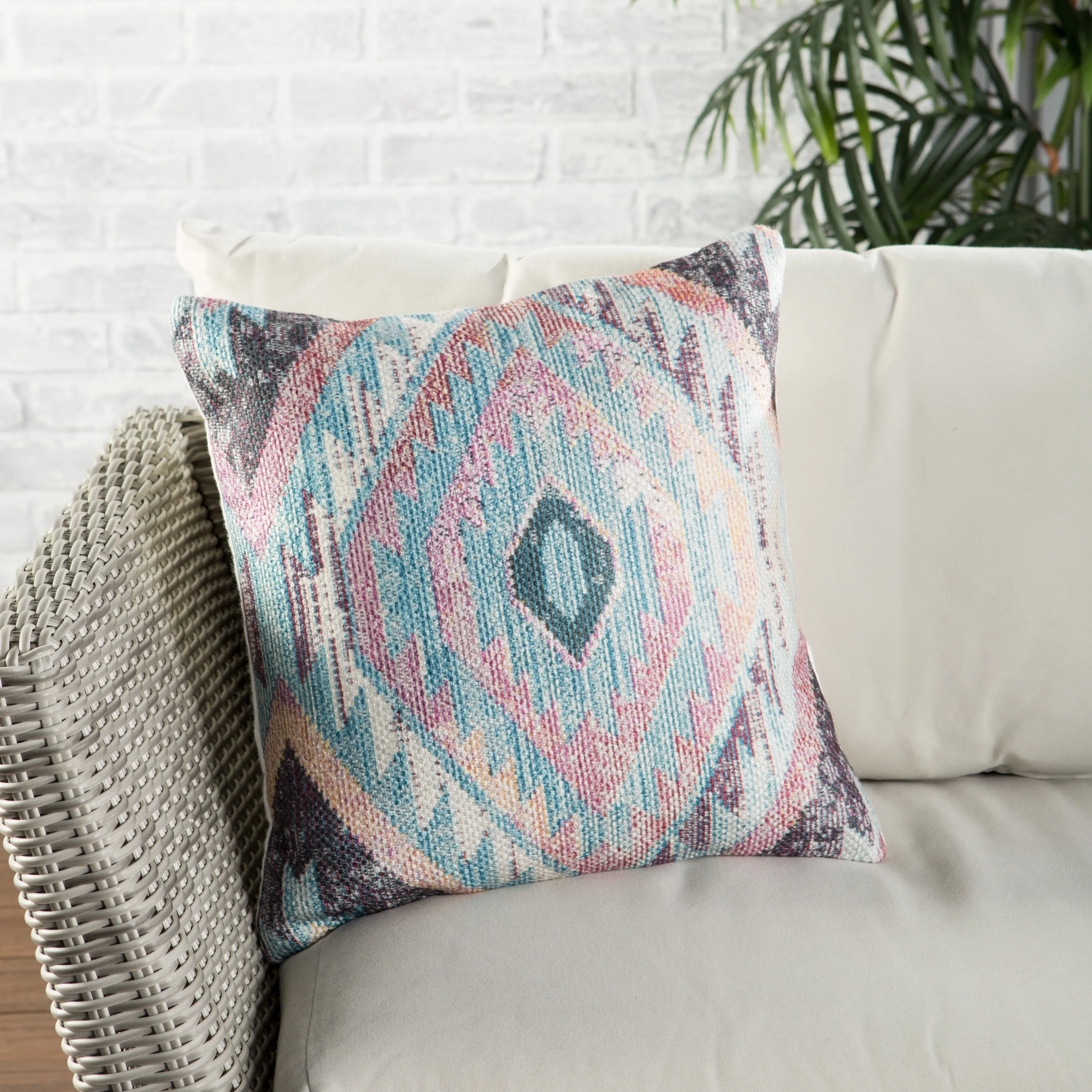 Contemporary pattern play and vibrant colors lend Nikki Chu's Groove pillow collection a whimsical, boho vibe. The Sinai pillow boasts a multicolor diamond motif and soft, durable feel. Perfect for indoor and outdoor spaces, this accent is made of easy-clean polyester and features a subtle, luxe sheen.
