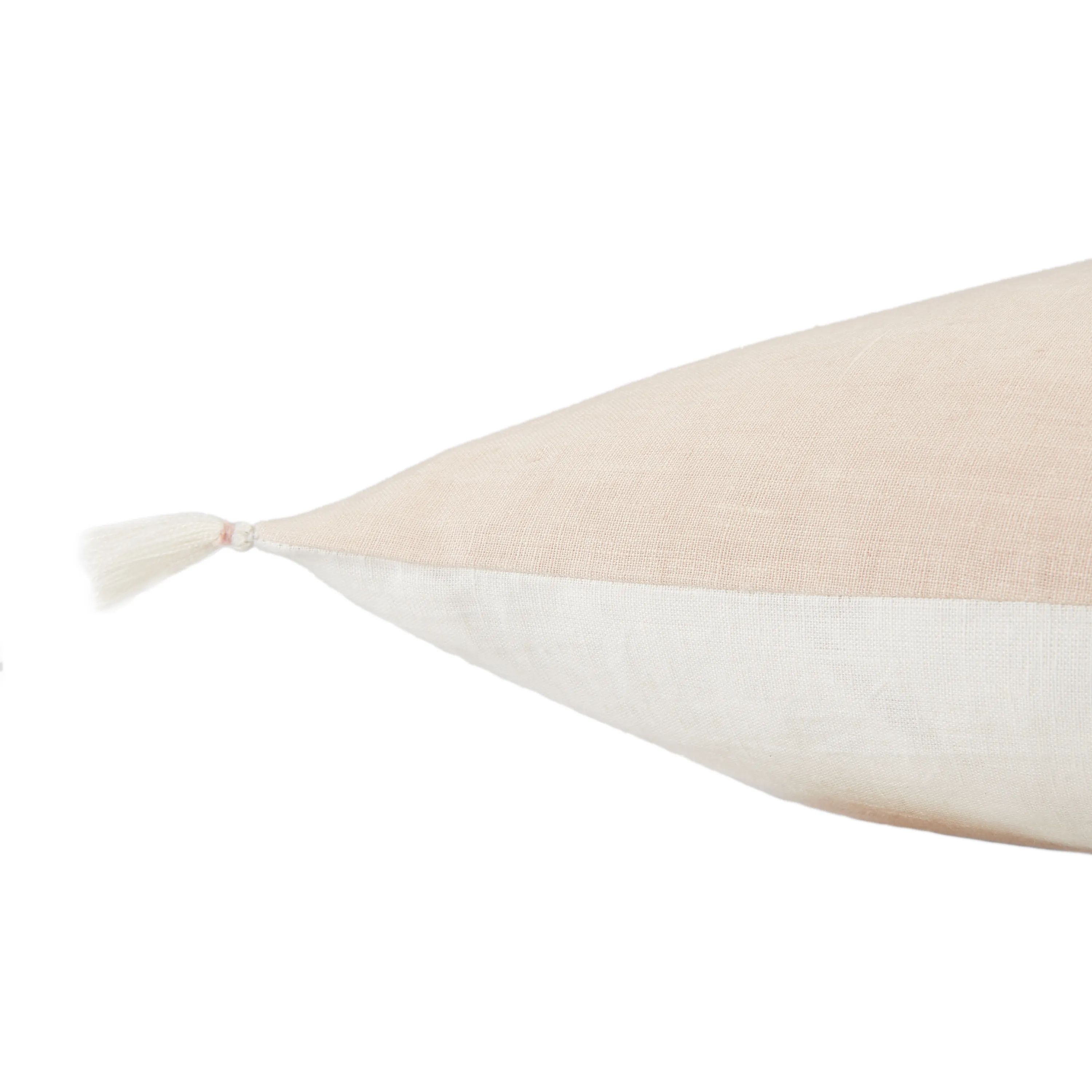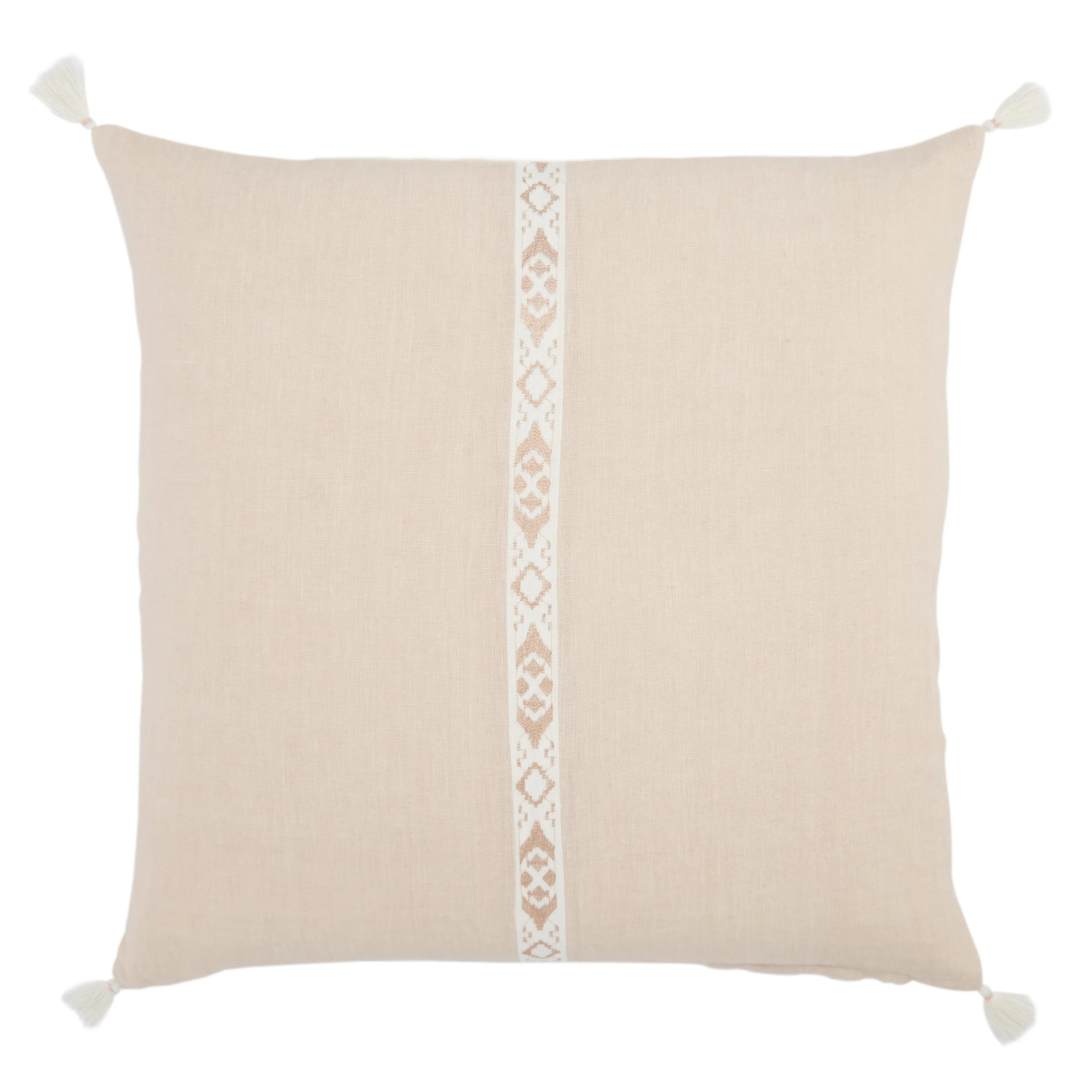 Sophisticated simplicity defines the texturally inspiring Taiga collection. Crafted of soft linen, the Joya pillow boasts an elegant blush and ivory colorway. A center band of tribal embroidery and corner tassel details lend global charm to this plush accent.
