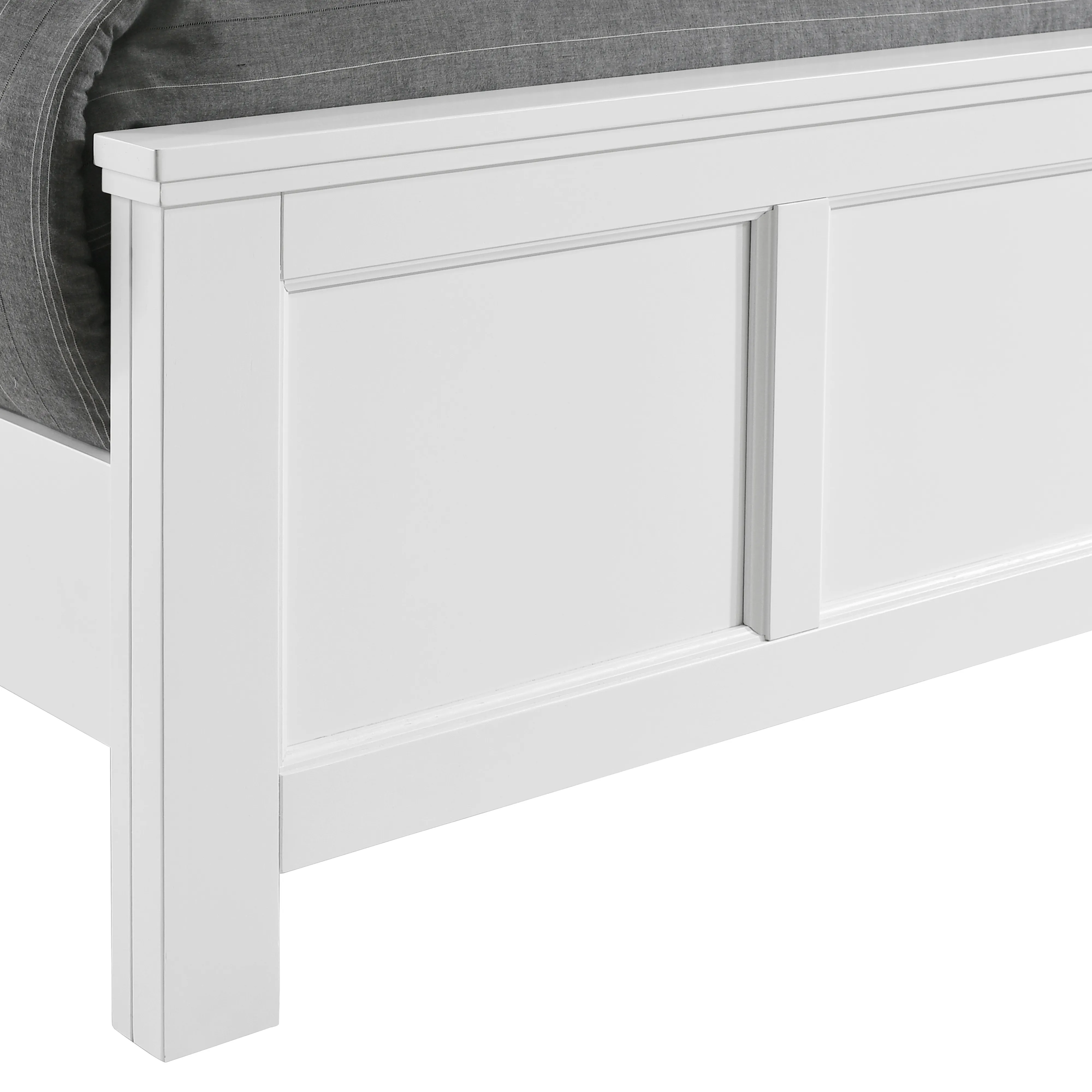 The Andover Wood Panel Bed in White is a perfect blend of durability, versatility, and contemporary style, making it a standout addition to any bedroom. Expertly crafted from solid Rubberwood, manufactured woods, and wood veneers, this bed is built to last while showcasing the natural beauty of real wood. The semi-gloss white finish offers a crisp, clean appeal that effortlessly complements a wide range of decor styles, from modern to traditional, enhancing your space with a fresh and refined look. The bed’s design is both striking and versatile, featuring a commanding headboard that serves as the focal point, with a matching footboard that creates a harmonious and balanced aesthetic. Clean, straight lines contribute to its contemporary appeal, while the sturdy block-style legs provide a solid and stable foundation, ensuring both durability and style in your bedroom.