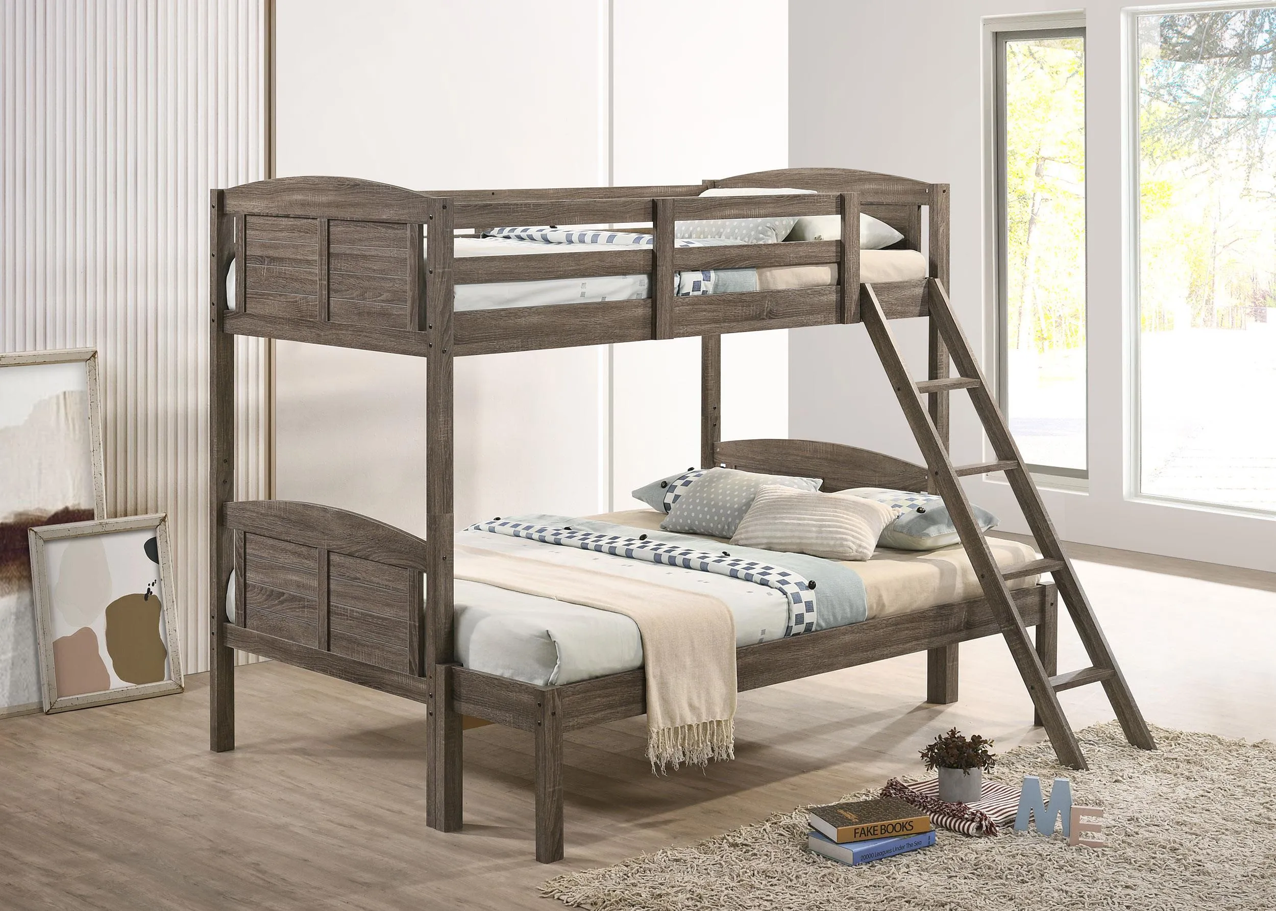 The Flynn Wood Over Bunk Bed With Mattress Weathered Brown - Twin/Full by Coaster Furniture may be available at Wright Furniture & Flooring in the Hannibal, Bowling Green and Hannibal areas. Please contact us to check availability.