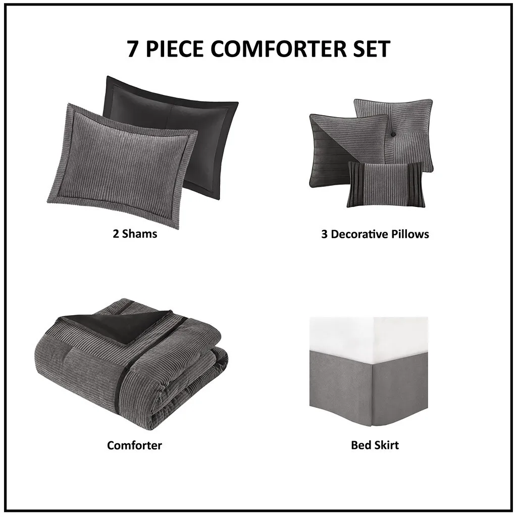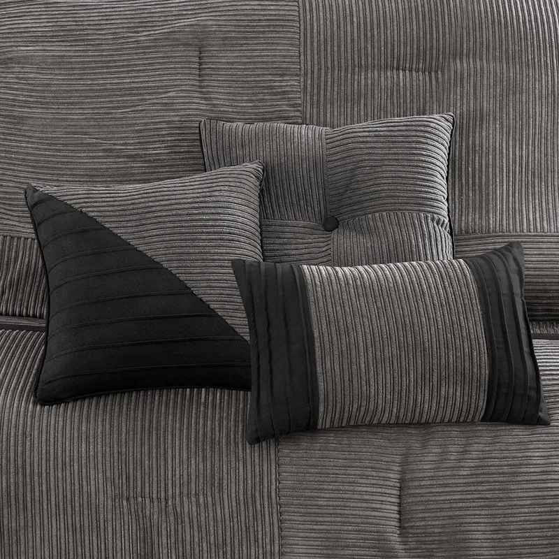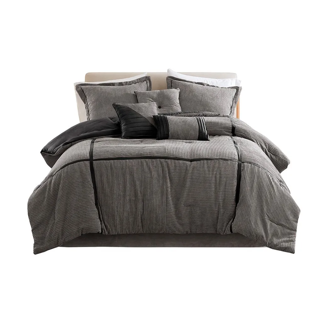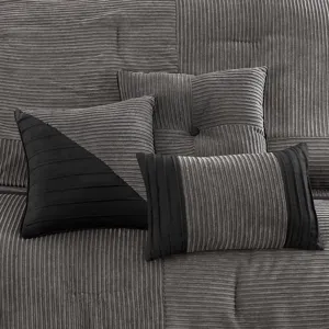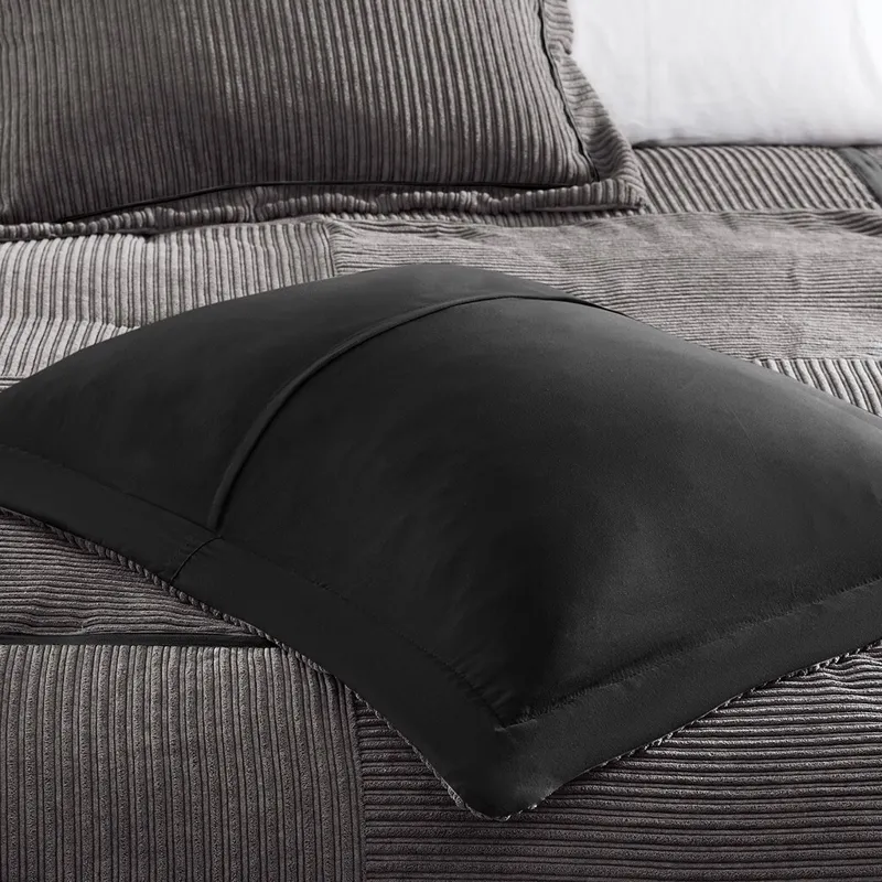 For a casual look with added comfort, the Dallas comforter set is perfect for you. Made from polyester micro corduroy, the comforter is pieced together in sections which are separated by taping and has a brushed fabric reverse. The shams in this cozy set have a 1" flange around the edges and overlap opening in the back. This set will keep your warm in the winter but is lightweight enough to keep you cozy during the warm months as well.