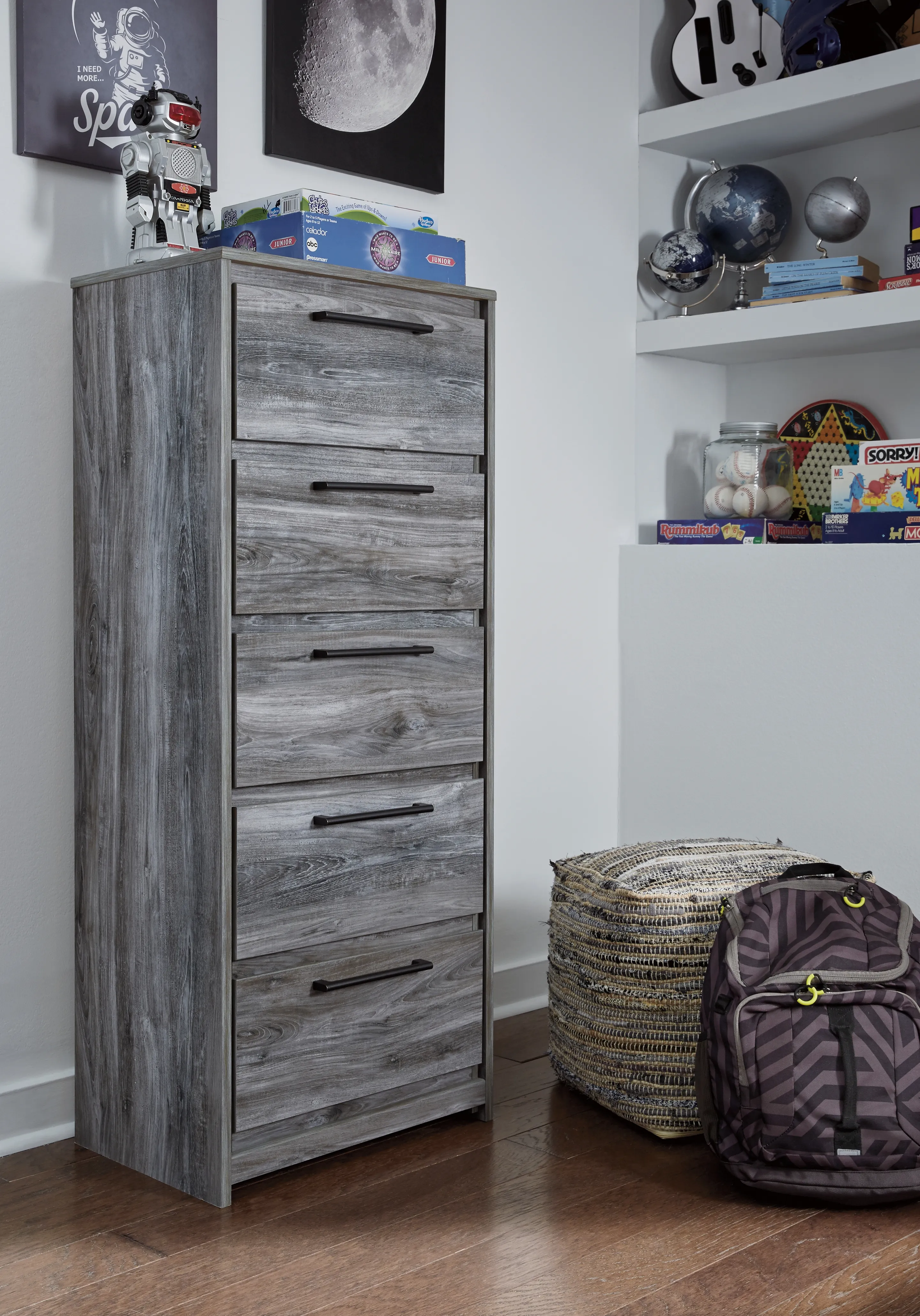 Beachy style and lots of storage go hand in hand with this narrow chest. Its driftwood and surfer-inspired smoky finish creates a rustic look that's perfect for setting the scene of an island getaway. Five roomy drawers give you the space needed for stowing away clothes and more. Clean lines and modern handles provide an authentic look to be admired for years to come.