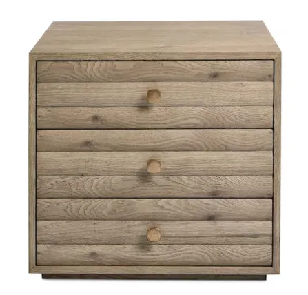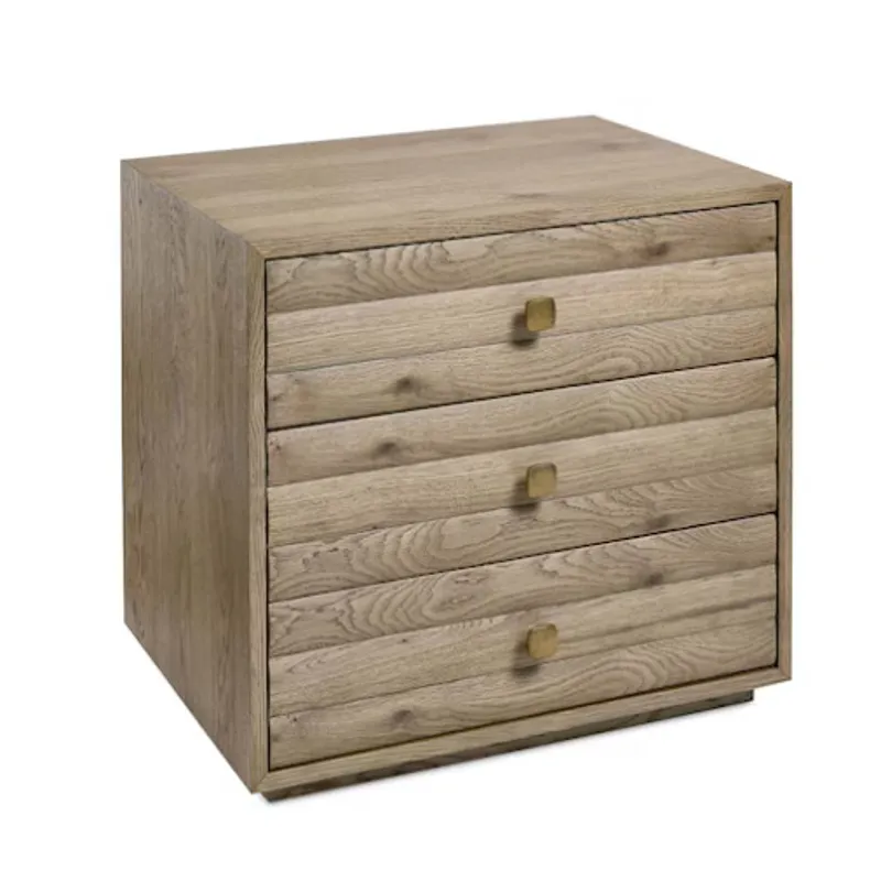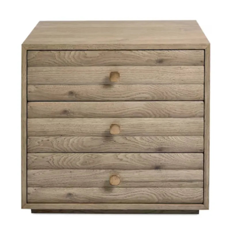 Enjoy 3 drawers of sleekly-styled bedside storage with the Modernist-inspired Andora Nightstand. The nightstands feature the same clean, modern silhouette and reeded drawer fronts as the Andora dresser and chest, each drawer adorned with a sand-cast, organically-shaped pull. The texture of the horizontally-planked oak adds a sophisticated contrast to the nightstand’s simple outline and plinth base. The Andora nightstand is available in two widths and three finish options. It can also be paired with the similarly-dimensioned Andora Open Nightstand.