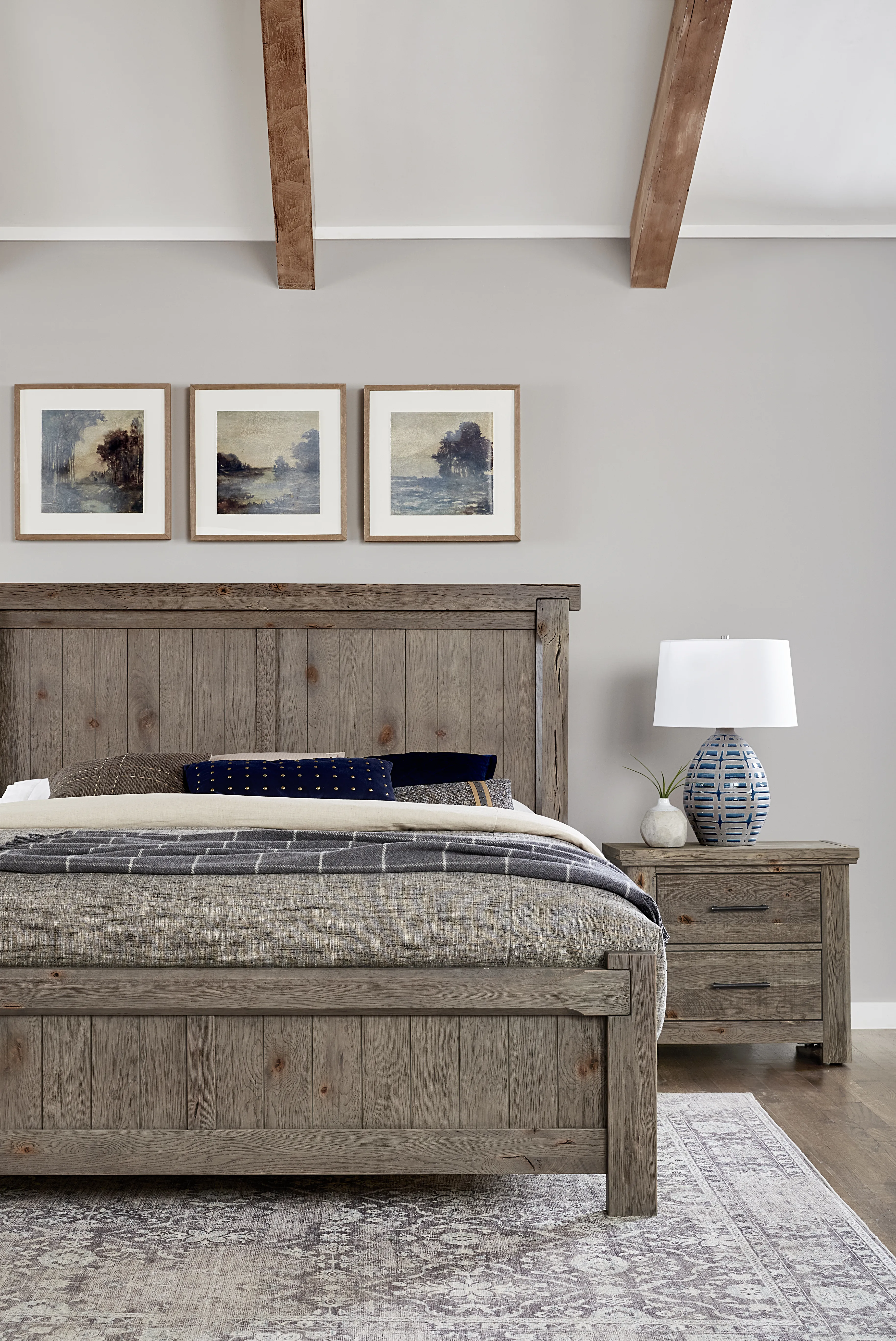 • Vaughan Bassett has developed a patent-pending process that allows them to accelerate how wood ages. We have kept the splits; knots; cracks; and the bold grain pattern found in Oak lumber to create this reclaimed look in this beautiful and unique bedroom