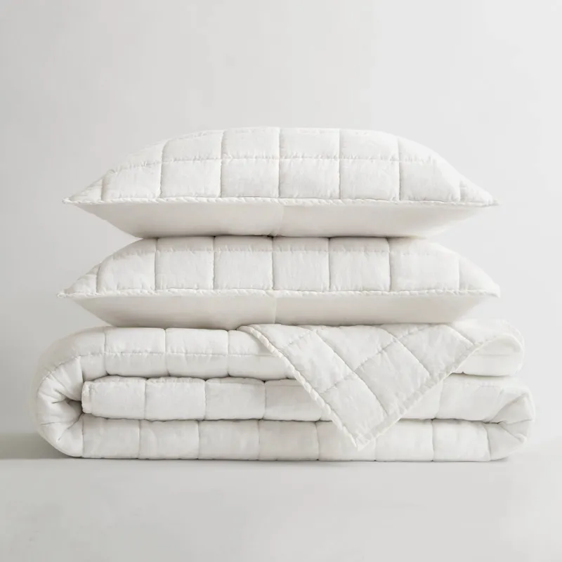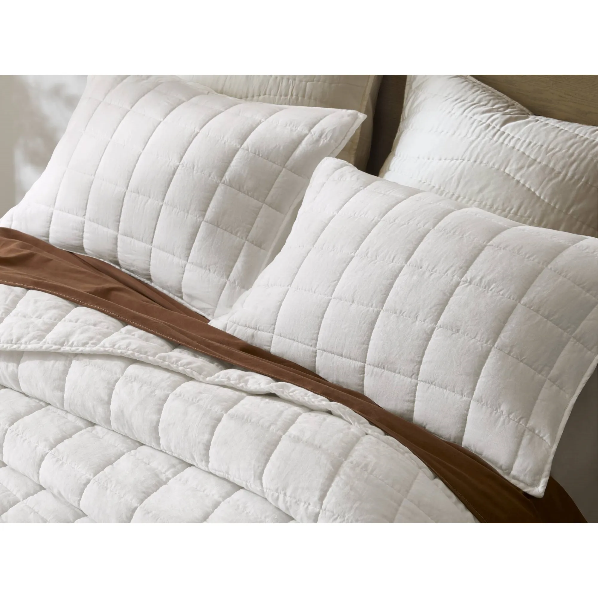 Made from certified French linen and shaped by artisanal hands, this bedding set brings a sense of calm, comfort, and understated luxury to the modern bedroom. The garment-washed quilt feels soft from the start, with added durability to help prevent shrinkage and fading over time—so it stays beautiful, wash after wash. Thoughtfully designed with a balanced 4x4 quilt pattern with piping finish, it adds just the right amount of structure and detail. Matching shams are included to complete the look. Certified by OEKO-TEX®, this quilt set is free from harmful substances and safe for daily use. It also includes a French Linen Certificate of Origin, affirming the authenticity and exceptional quality of the natural fibers used.