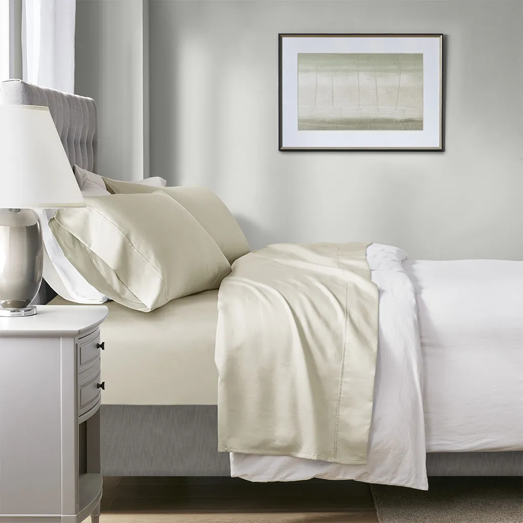 Perfect for hot sleepers, these deep pocket cotton blend polyester sheets feature thermal technology helping you stay cool, comfortable, and dry throughout the night. Made out of 55% cotton and 45% polyester these 4-piece cotton blend sheets are moisture wicking. These sheets have been brushed with a peached finish for an ultra-soft feel. Machine washable for easy care. These sheets are also OEKO-TEX certified, meaning it does not contain any harmful substances or chemicals, ensuring quality comfort and wellness.