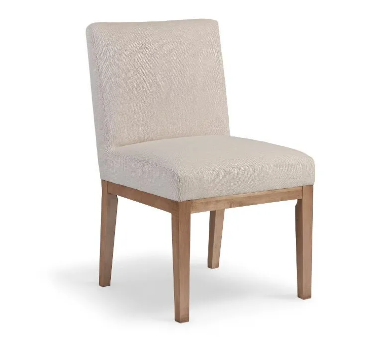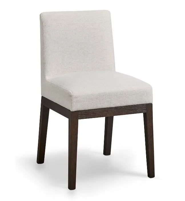 Enjoy daily dining just got an elegant update from the BenchMade Holt upholstered dining chair. A fully upholstered back and seat invite everyone to linger just a little longer at the table while the clean, modern silhouette adds curvaceous subtlety and elegant tailoring to your aesthetic. Choose from a range of lightly distressed finishes. The fabric options range from performance linens to velvets in a range of almost-edibly beautiful colors. Fabric and finish choices are available in-store.