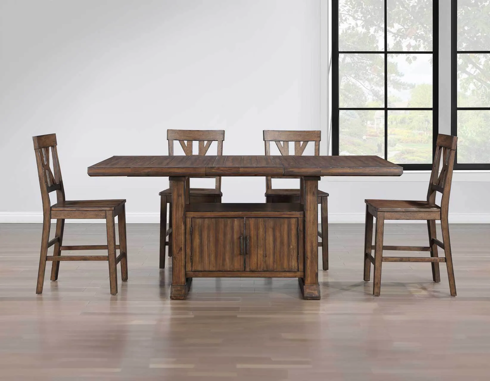 What truly sets this table apart is its expandable design. At its standard 60-inch width, it comfortably accommodates a cozy dinner for your family. However, when the occasion calls for it, the Auburn Storage Counter Table effortlessly transforms into a grand 80-inch centerpiece with the included 20-inch leaf. With this generous size, you can now seat up to 8 guests comfortably, making it perfect for entertaining friends and loved ones.