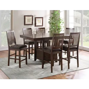 The Burlington 52-inch Round Table in mocha forms a centerpiece that marries elegance with style. The table features a sturdy circular base, providing a strong foundation while offering ample clearance for chairs. Its unique polygonal circle design is highlighted by a striking black accent on the apron and base that seamlessly elevates the ebony finish to create a cohesive and luxurious look. Designed to comfortably seat up to six people, the Burlington Table is ideal for fostering a cozy and intimate atmosphere, perfect for close-knit gatherings and engaging conversations.