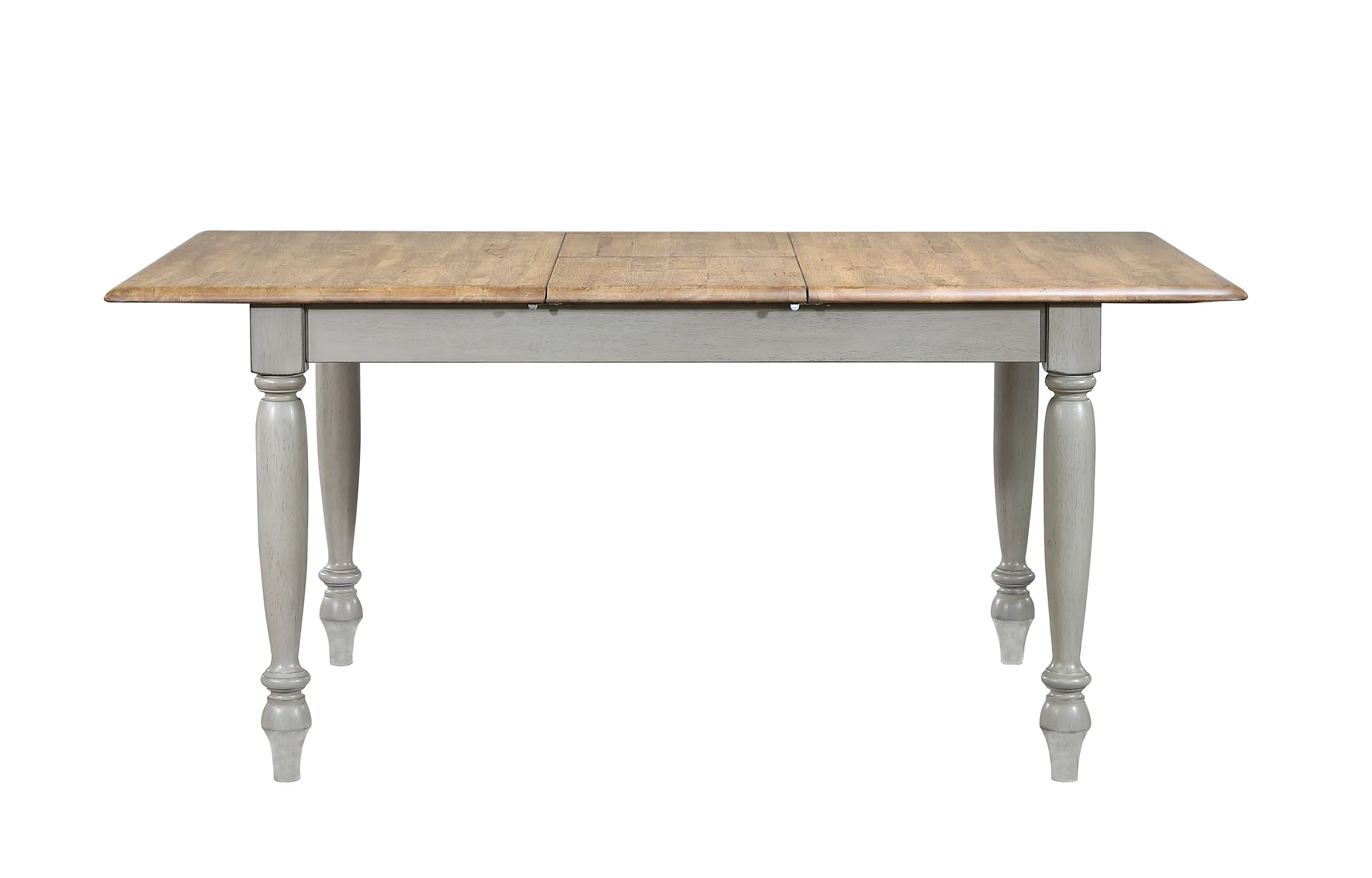 Barnwell 66" Leg Table w/15" Butterfly leaf (DB53667): 36 x 51 x 30 - Made from solid hardwood, simplicity in design, subtle accents and a grey and rustic brown two tone finish come together to create this finely crafted collection. Solid hardwood, 15 in self storing butterfly leaf expands table from 51 in to 66 in, Table top thickness: .75, Apron: 3.5, Legs: 3.25w x 3.25d x 29h, Arm chair knee hole: 27.5, Side chair knee hole: 43, Floor to apron: 25.5, Overhang: 1.25 / 8.75