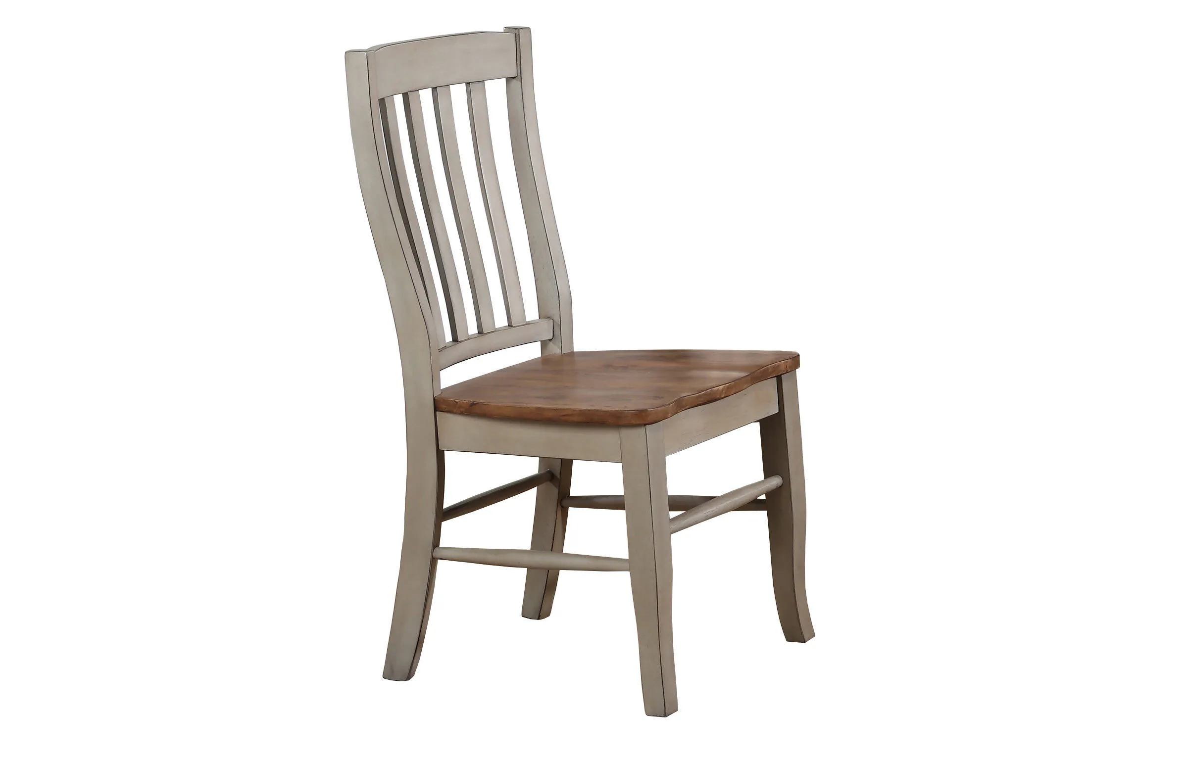 Barnwell Rake Back Side Chair x4 (DB522S): 19 x 23 x 38 - Made from solid hardwood, simplicity in design, subtle accents and a grey and rustic brown two tone finish come together to create this finely crafted collection. Solid hardwood, Contoured seat, Lightly distressed finish, Seat front width: 19 in, Seat back width: 15 in, Seat depth: 17.5 in, Floor to seat: 18 in
