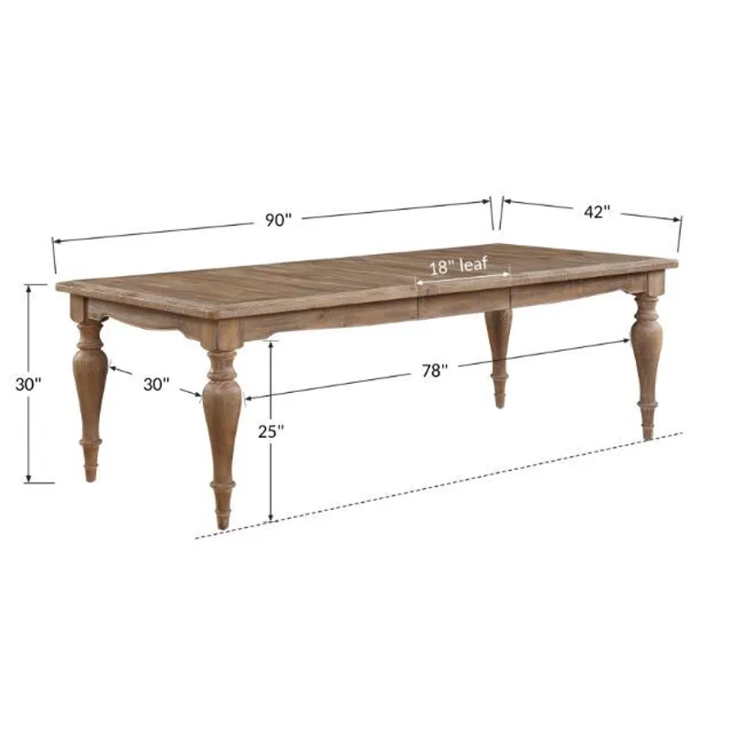 - 18" take-off leaf extends table from 72" to 90"
