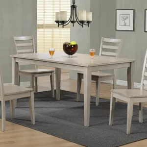 Solid hardwood and clean functional design. Muted oyster grey offers a strong, simple dining room foundation suited for small to large areas with standard or counter height options.