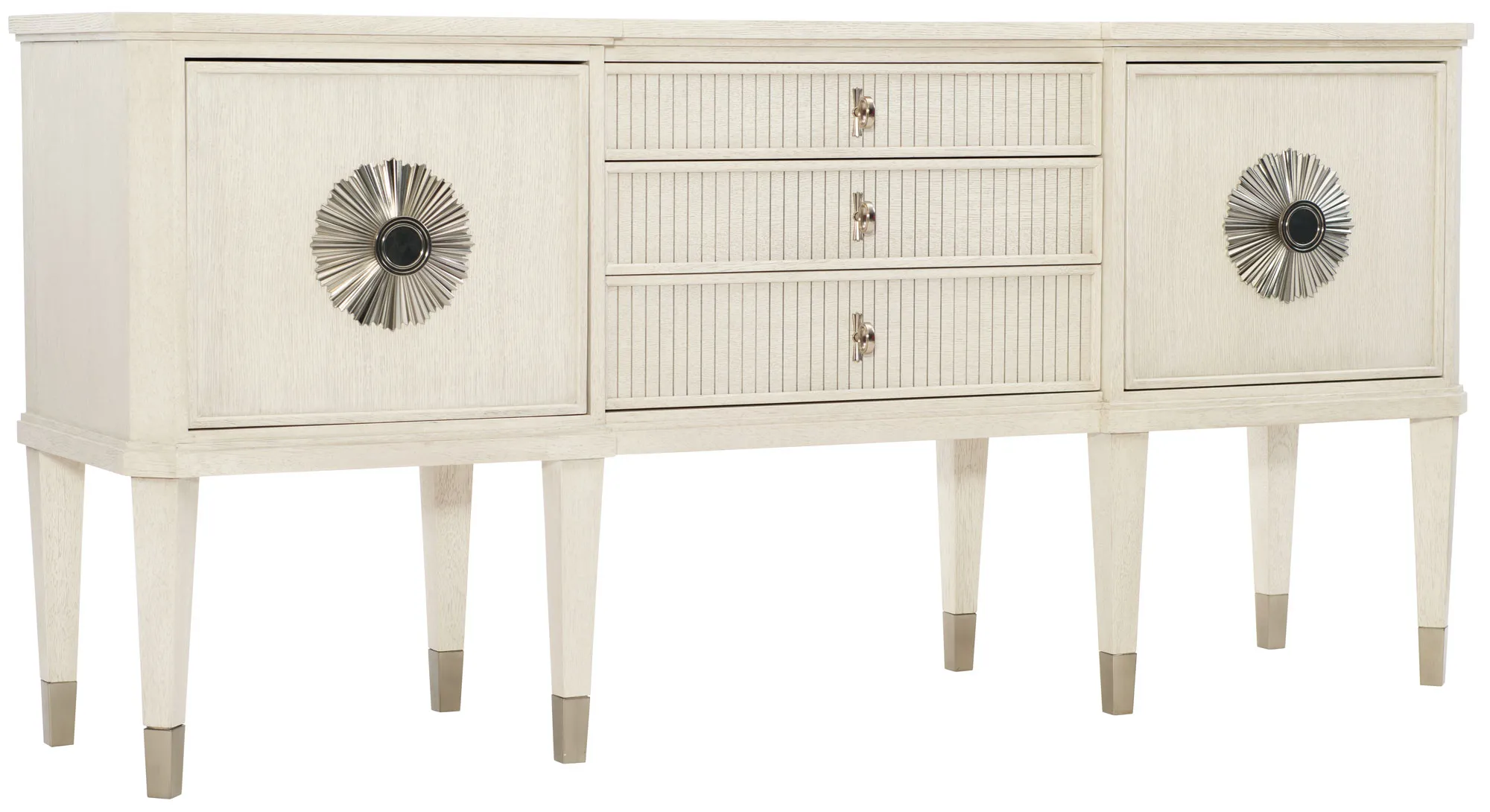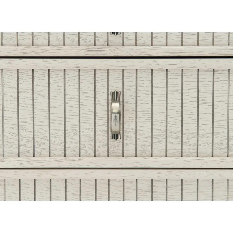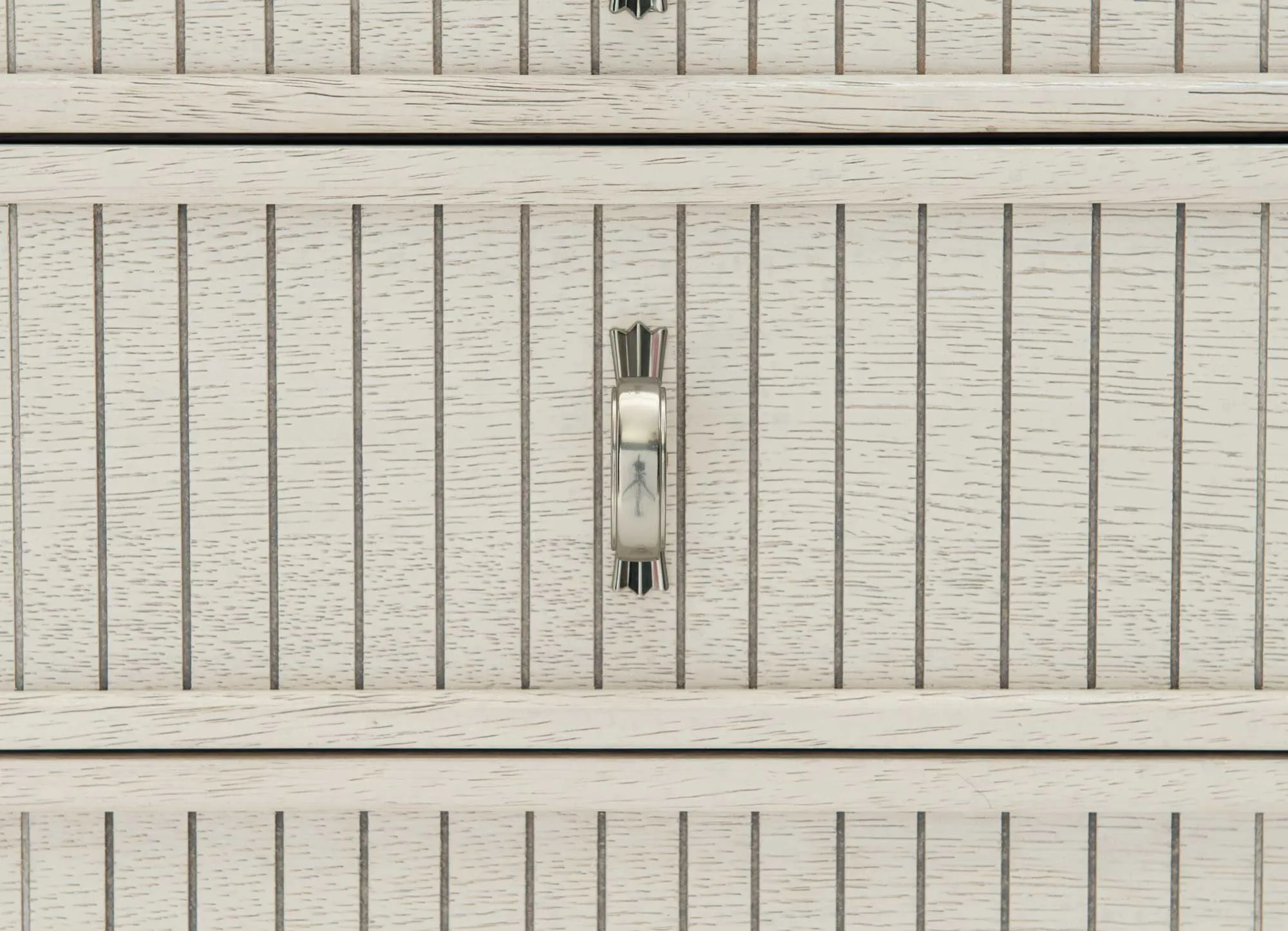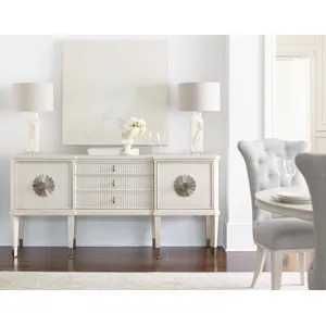 Behind doors is one adjustable/removable shelf and a bottom shelf surface