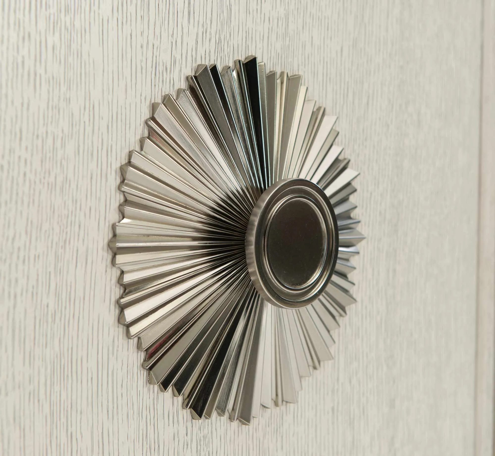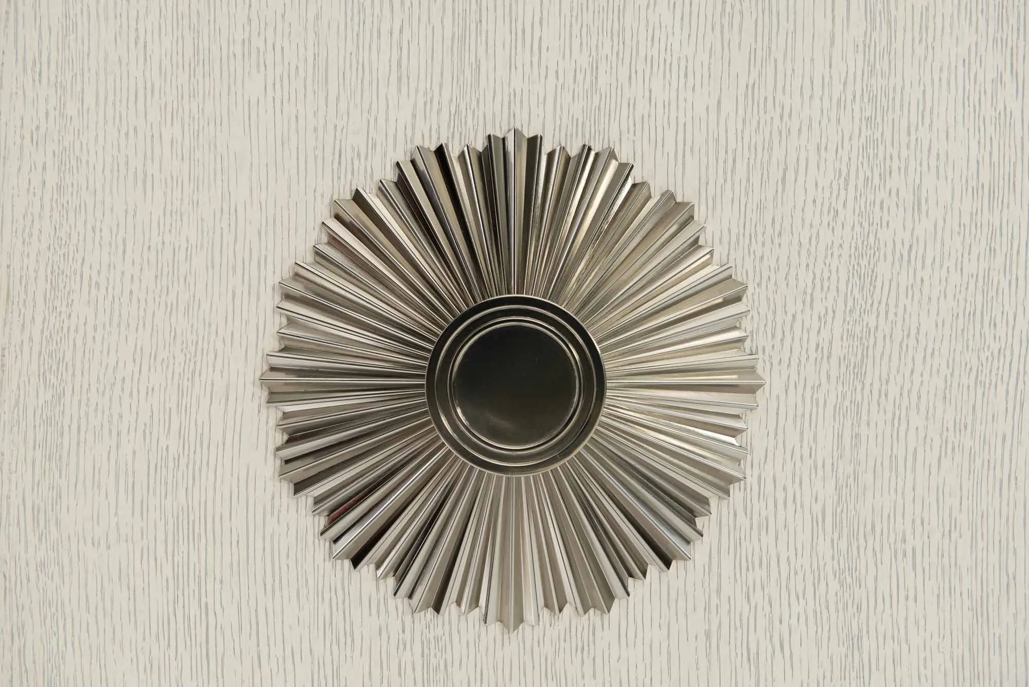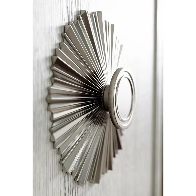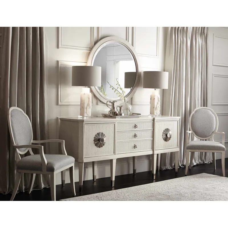 Behind doors is one adjustable/removable shelf and a bottom shelf surface
