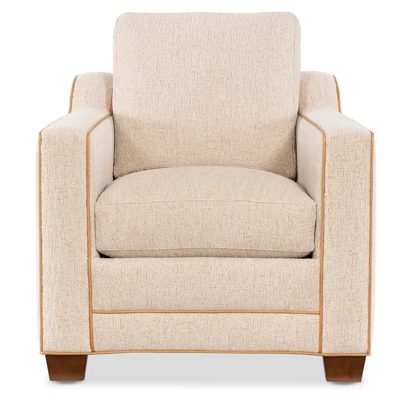 Bold form meets exceptional comfort in the Loftin Chair by Bradington-Young, a premium stationary leather accent chair with a sleek track arm design and loose pillow back. Built with eight-way hand-tied coil springs and Premier Down cushions, it provides a perfect balance of structure and softness. The welt-trim detailing and tapered block wood legs add transitional flair. With over 135 leathers and 200 fabric options, Loftin delivers tailored elegance for any upscale interior.
