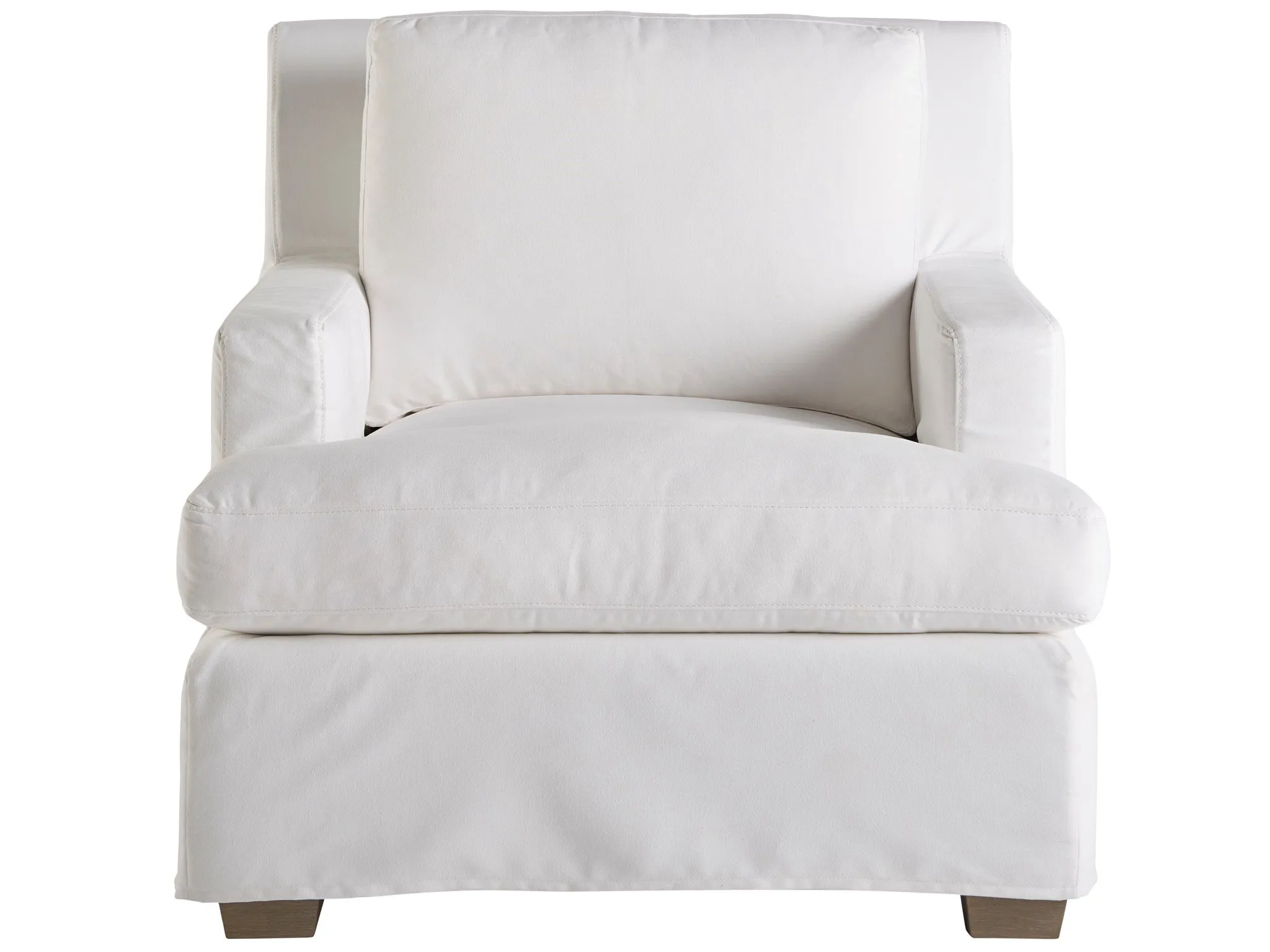 The epitome of comfort, the Malibu Slipcover Chair features a plush frame draped in a Easy Street Snow performance fabric and is completed with gently tapered square legs.
