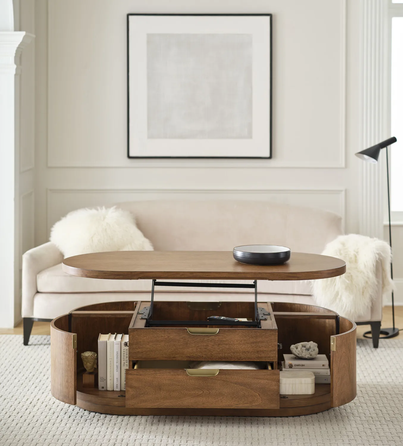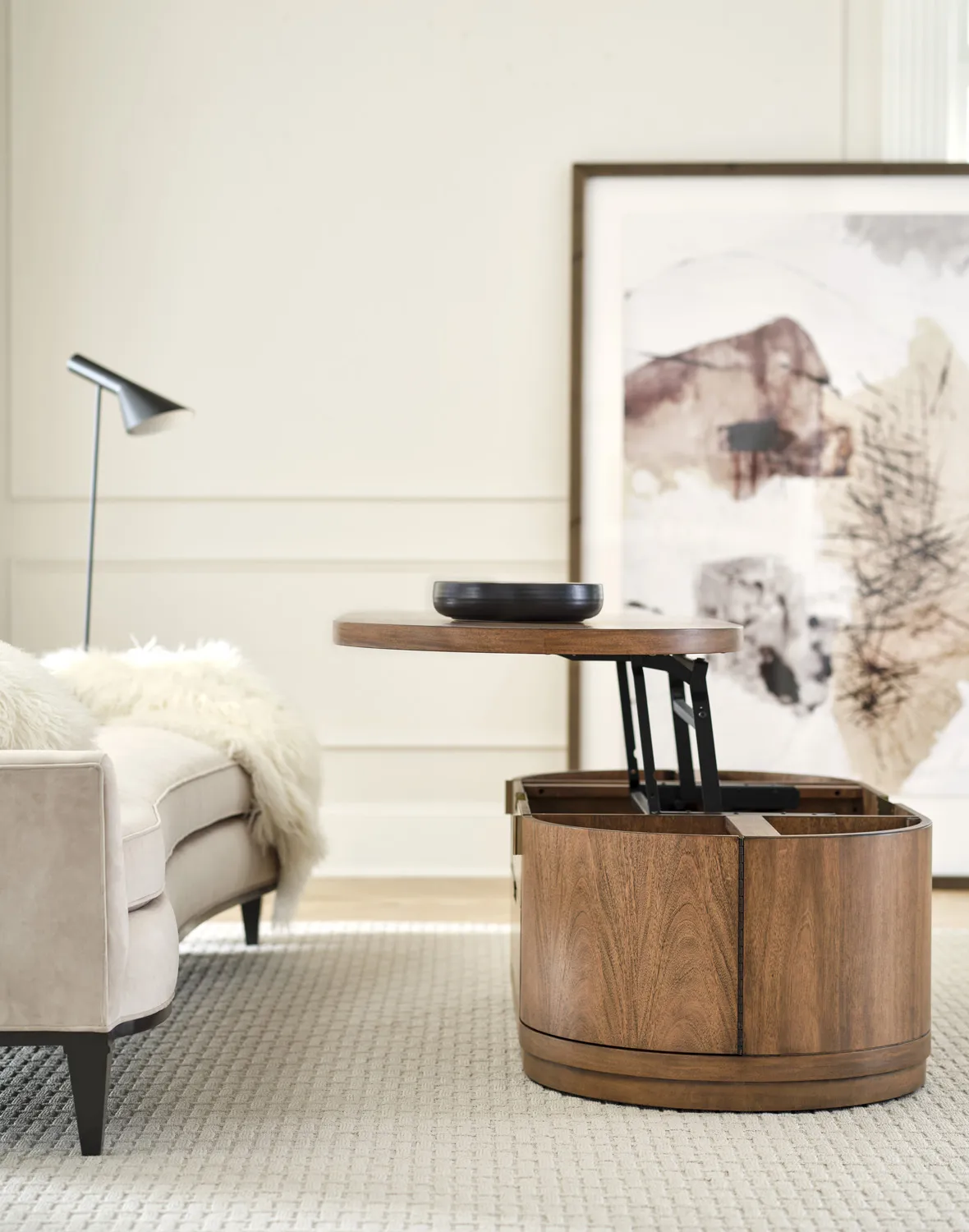 Pullout Lift Top: The top lifts up and forward creating a versatile work surface so you can surf the web or eat dinner while relaxing on your couch.