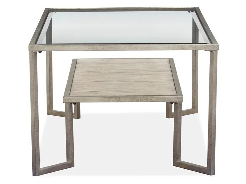 A winner on every level, the Bendishaw table collection embodies the essence of great design. Combining metal, wood and glass, it offers a rich mix of materials that's both chic and inviting. A shade of Coventry Grey highlights the wood tones of its center shelf while a Zinc finish outlines its shapely geometric shape and versatile glass top. More than just a pretty face, the distinctive look of this table group is destined to dazzle.