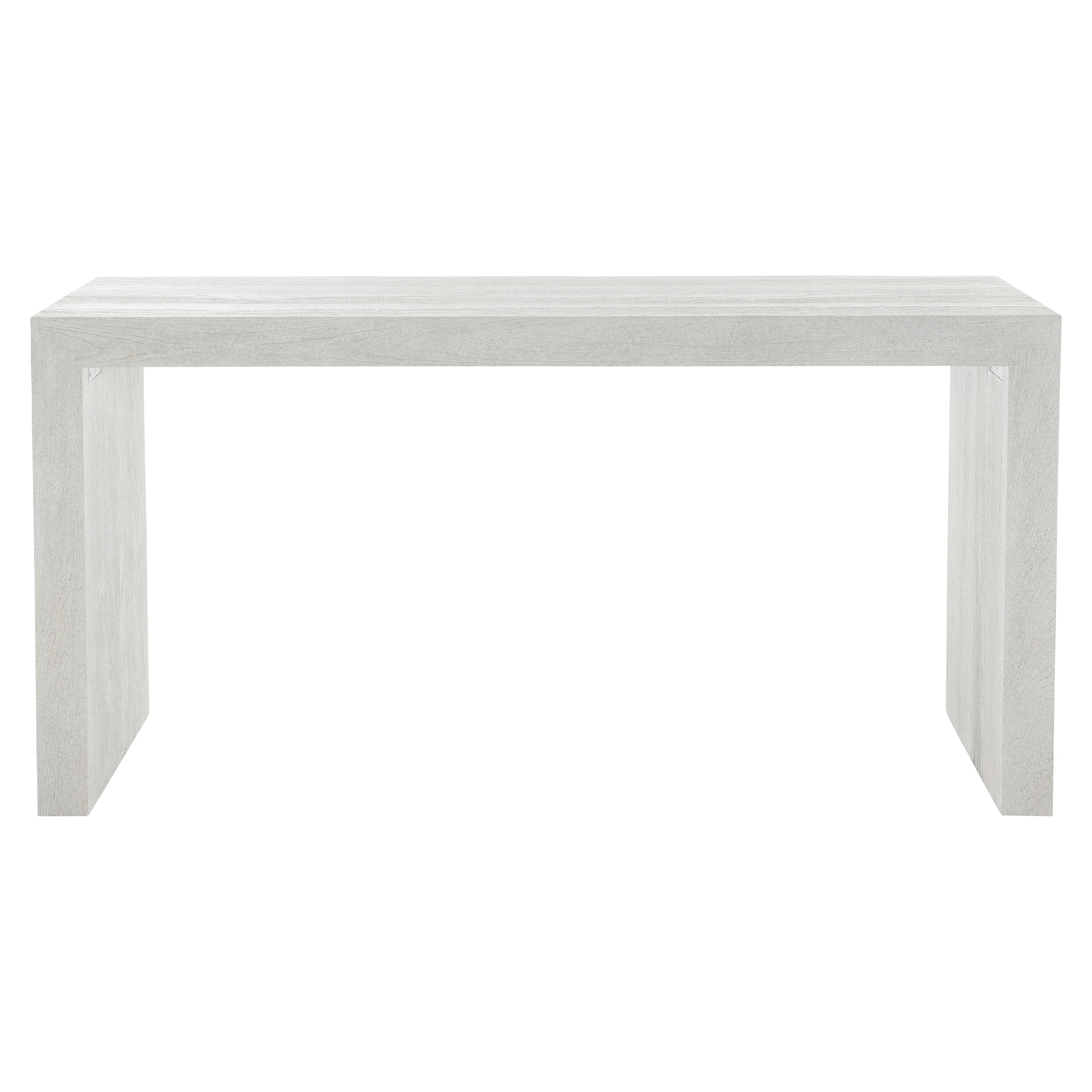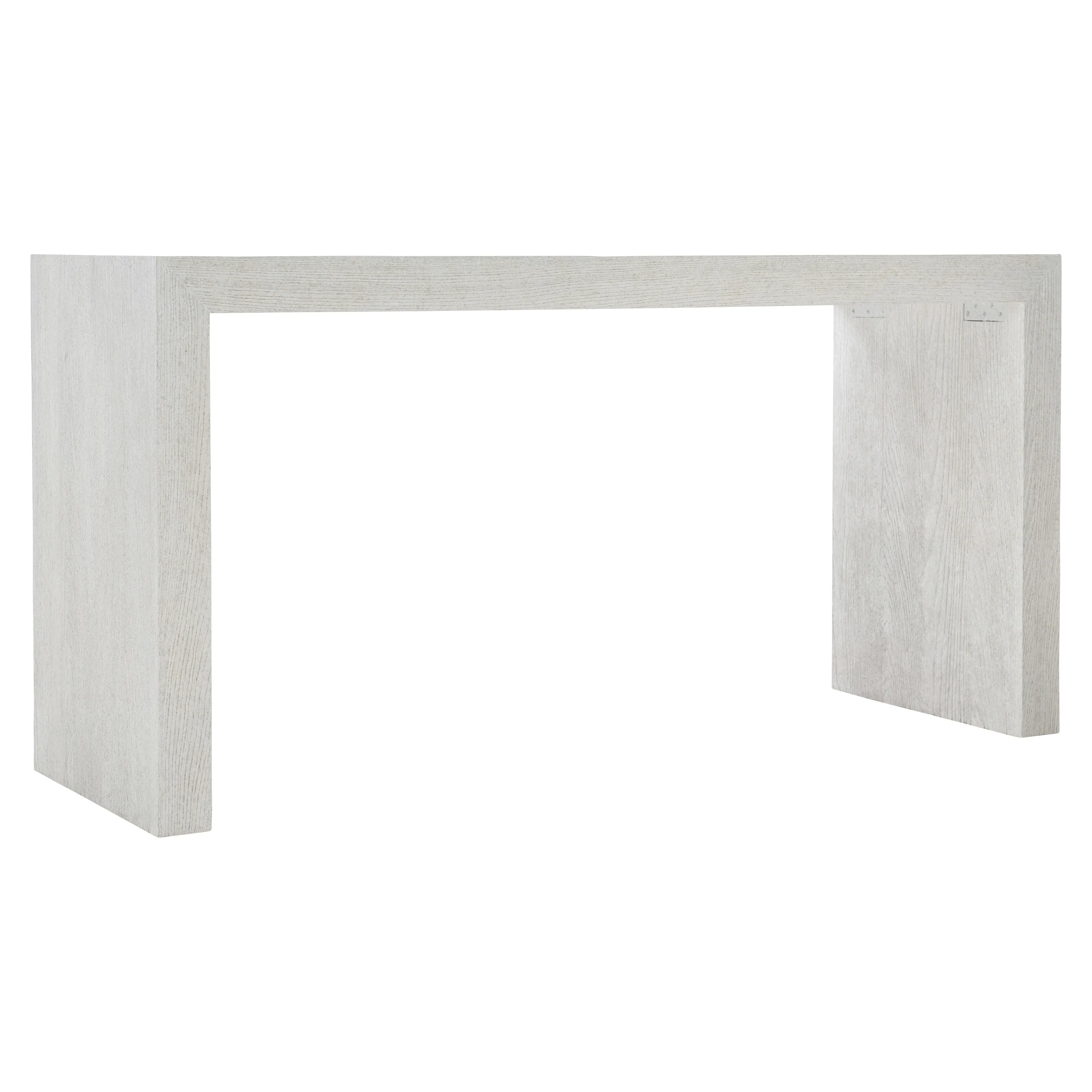 Sandblasted White finish. Rectangular console table with sandblasted Ash veneers. Adjustable glides.