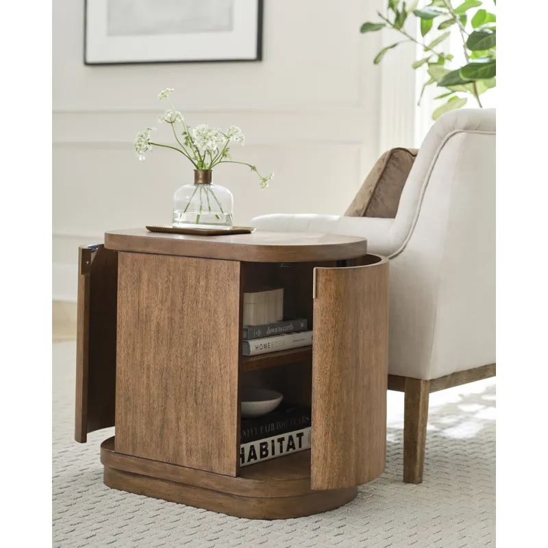 Caden Round End Table w/ Doors - Spiced Caramel