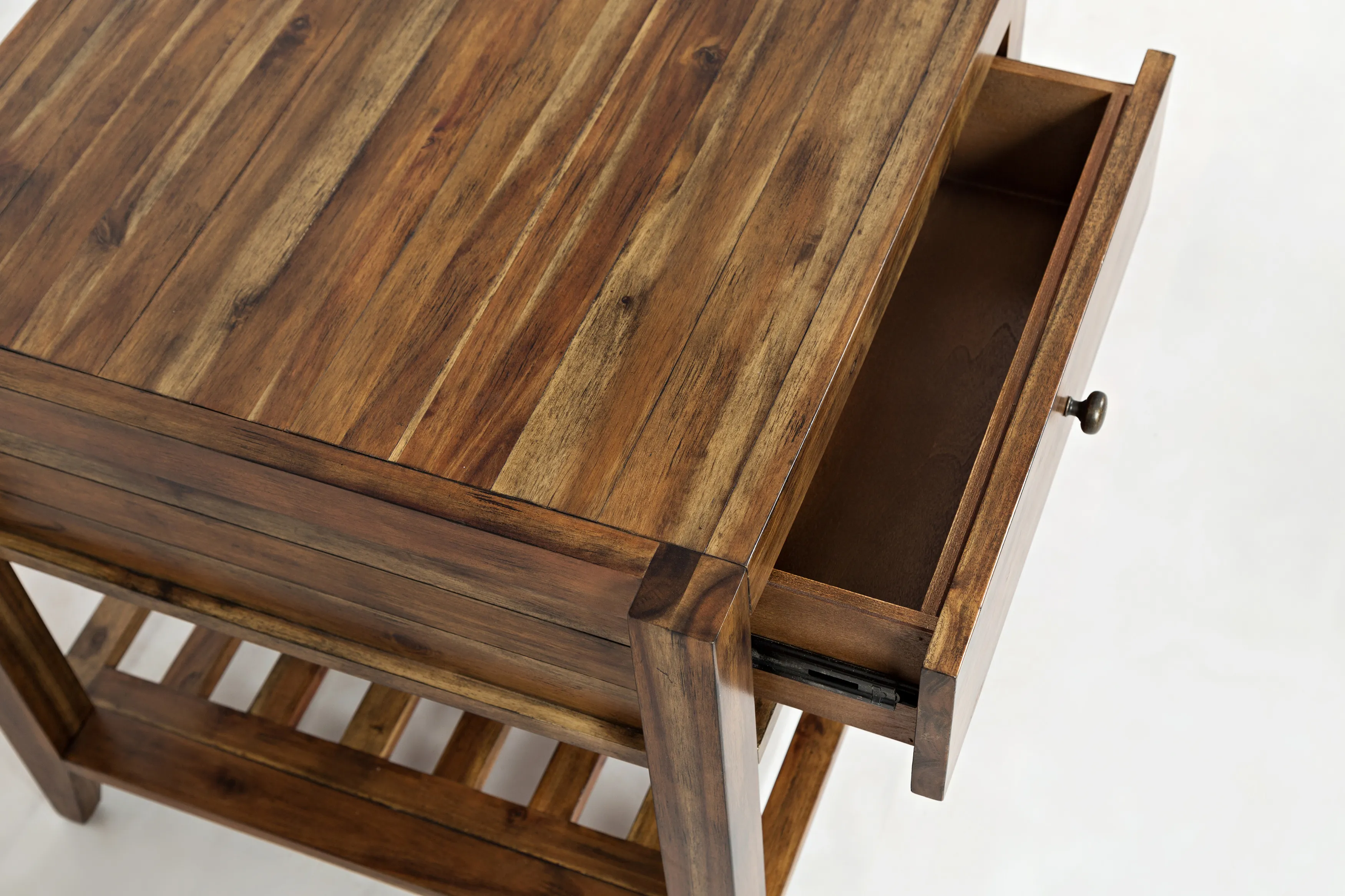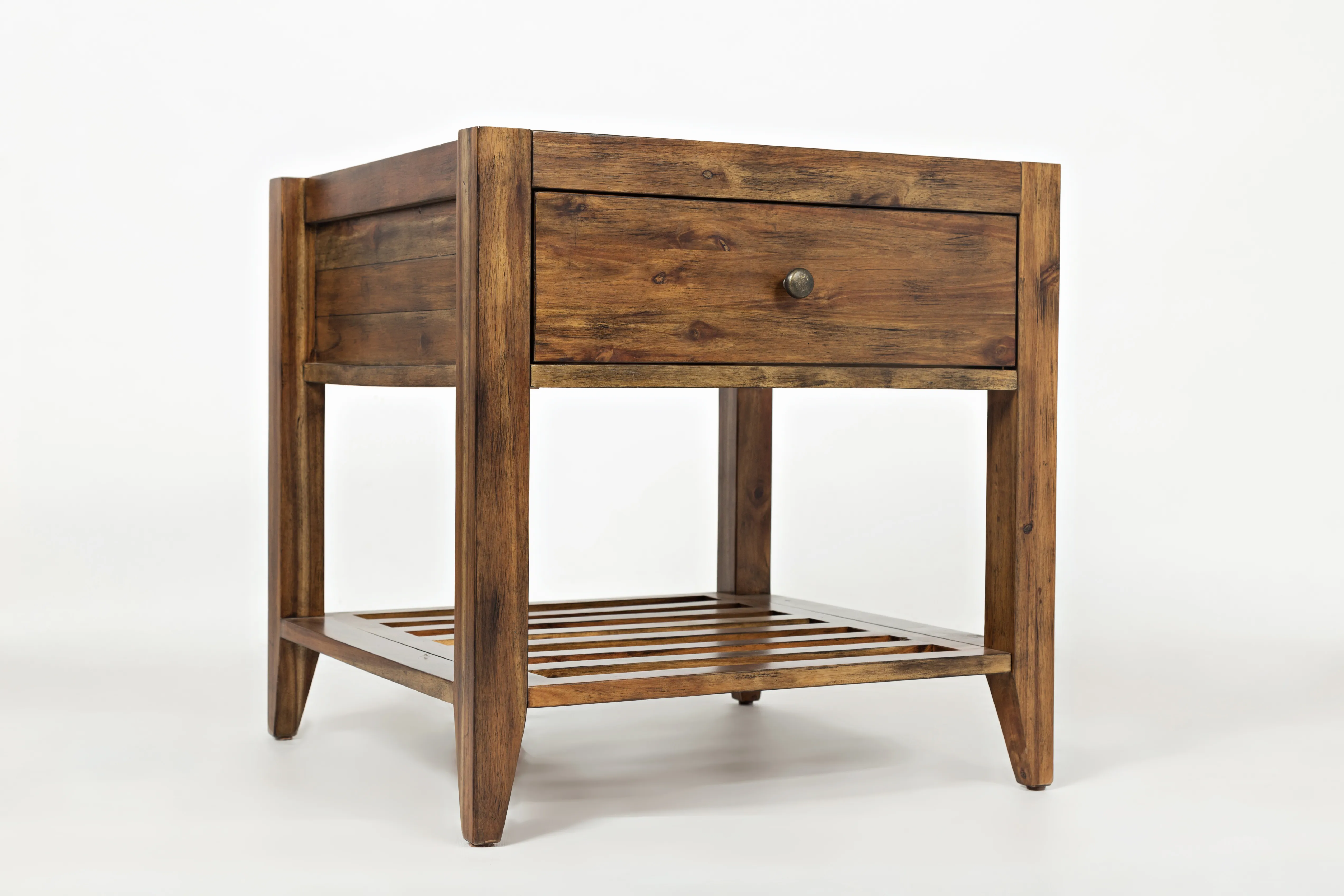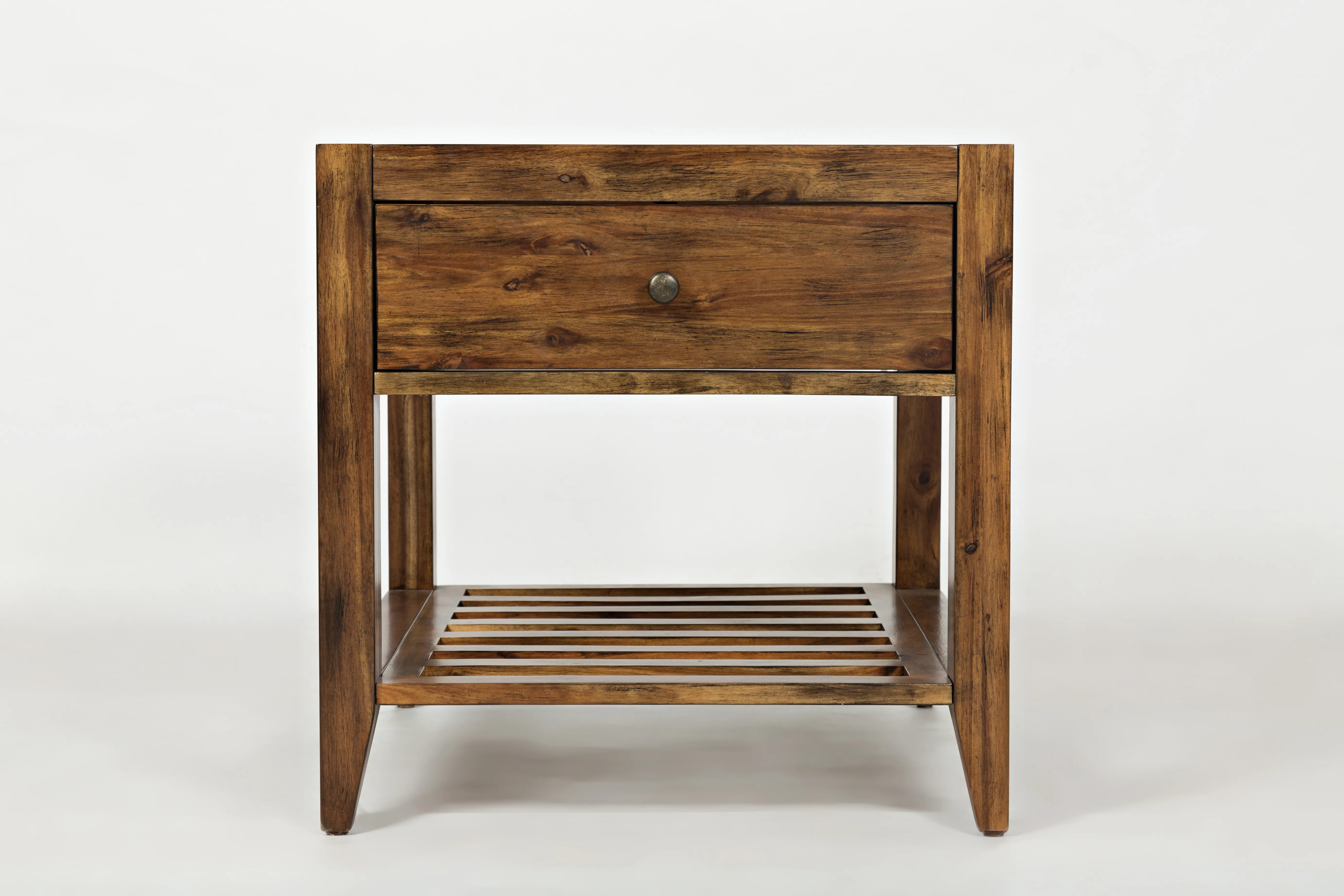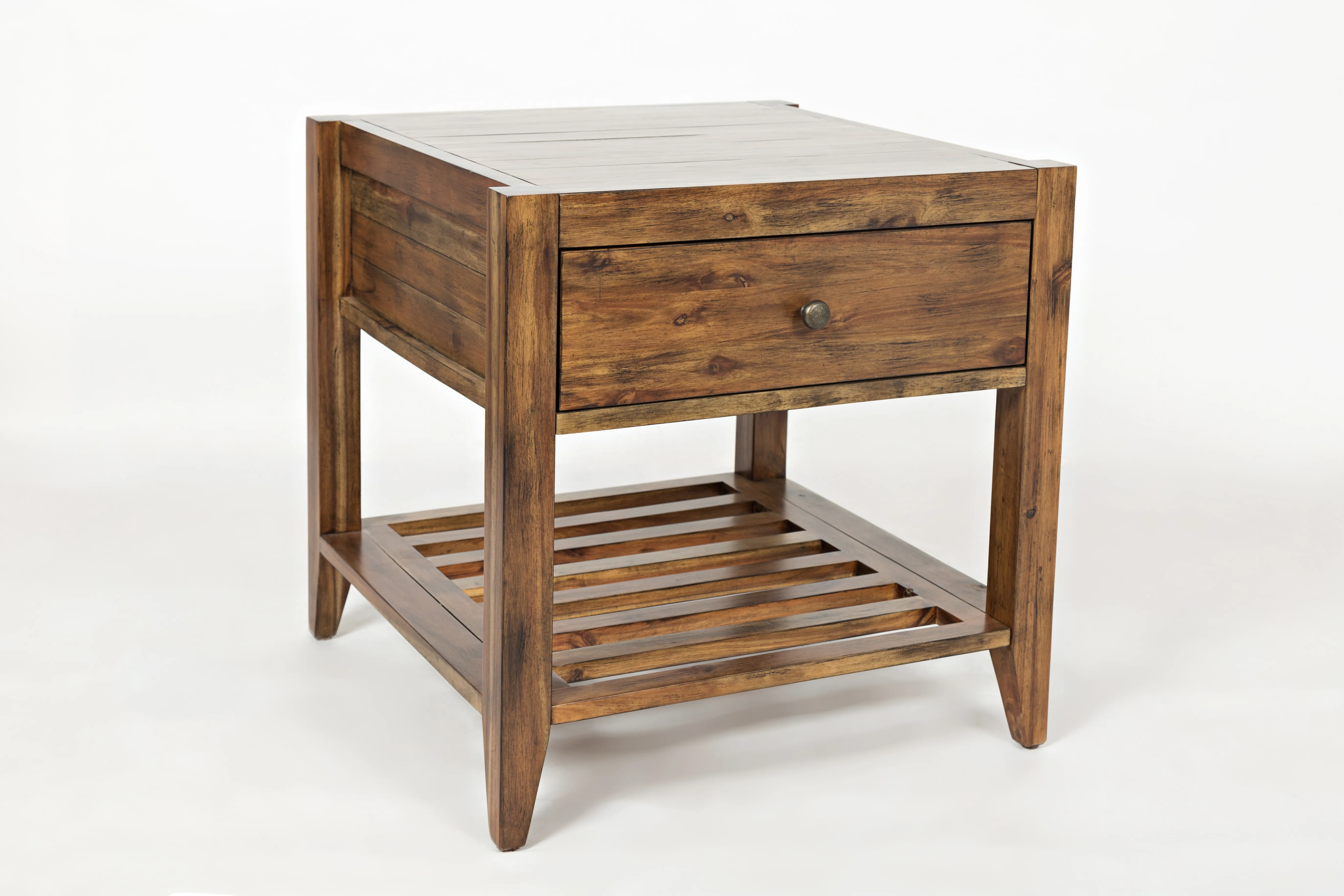 Introduce a touch of elegance to your living space with the Beacon Street Square End Table, part of the Beacon Street occasional group. This table, with its rich solid wood finish, features one drawer and one shelf, offering both style and practicality. The slat details on the shelf add a distinctive touch, enhancing its modern charm. Measuring 24" W x 24" D x 24" H, this versatile table is perfect for various uses, from holding lamps to displaying decorative items, blending functionality with timeless design.