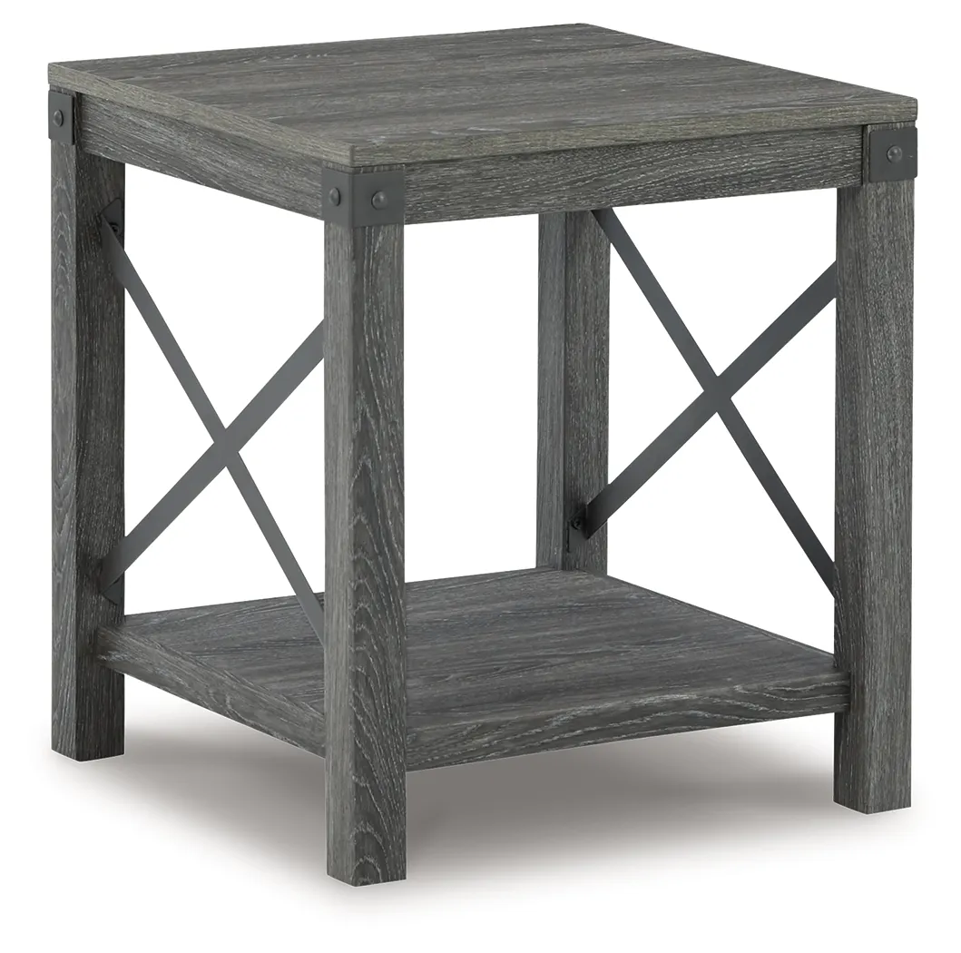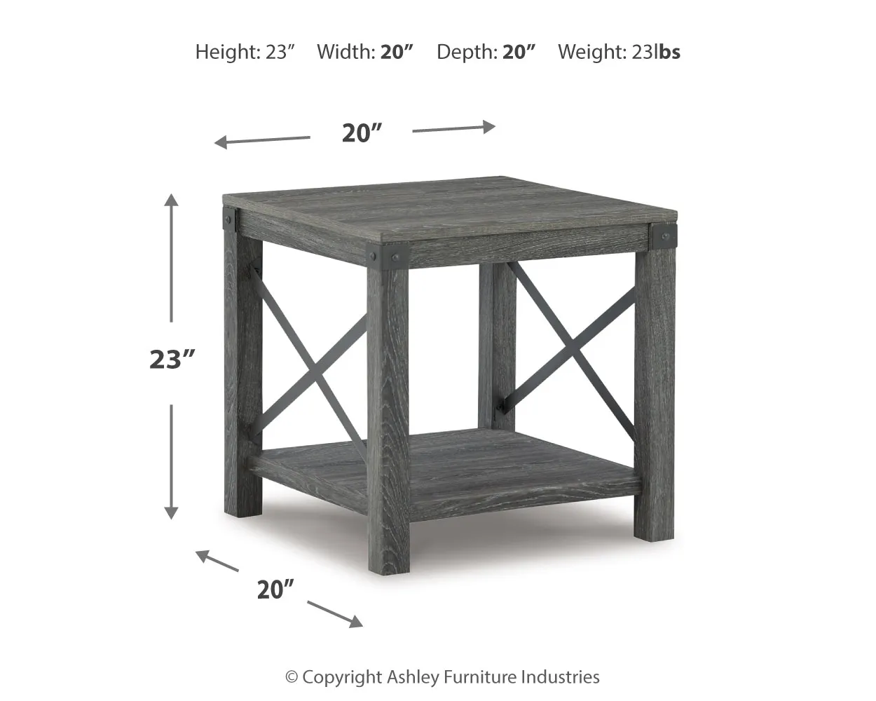 Open the door to modern farmhouse style with this square end table. The beautiful woodgrain look and classic crossbuck metal accents are a cool touch, while the lower shelf provides surface space for fashionable home accessories.