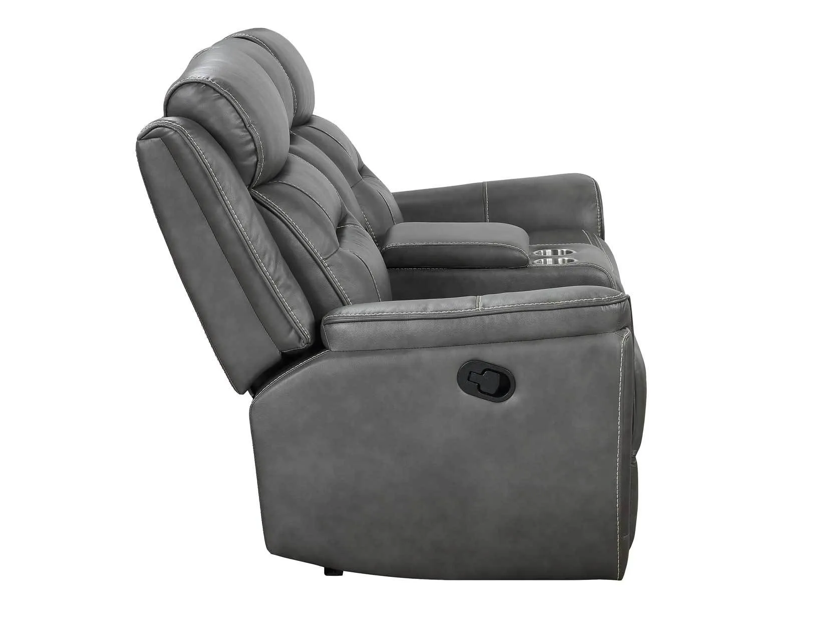 Contemporary style in a Loveseat that reclines for the most comfortable seating experience you can find. Nash is as comfortable closed as open with a stylish shaped seat that offers a relaxing and comforting seat. At the flick of a lever, the recliner extends out to let you completely unwind. A built-in headrest makes watching television easy while the lift-top console offers a convenient armrest and hidden storage for remotes and other devices.